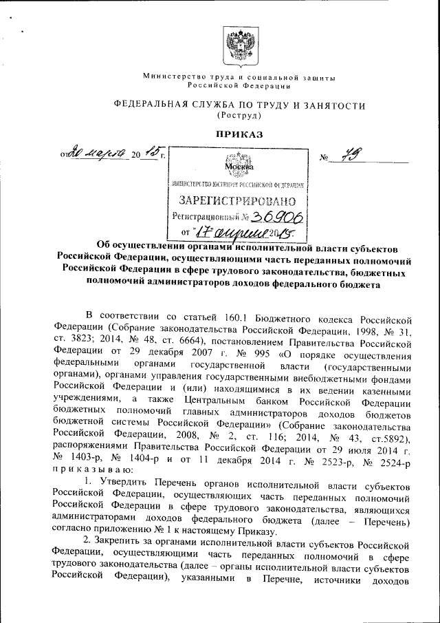 Приказ Федеральной службы по труду и занятости от 20.03.2015 № 79