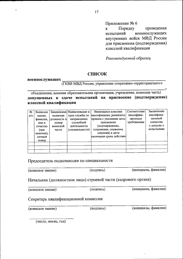 "О проведении испытаний военнослужащих внутренних войск МВД России для присвоения (подтверждения) классной квалификации"