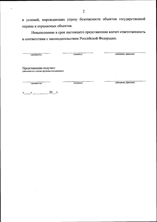 "Об утверждении Порядка подготовки и внесения представлений об устранении причин и условий, порождающих угрозу безопасности объектов государственной охраны и охраняемых объектов"