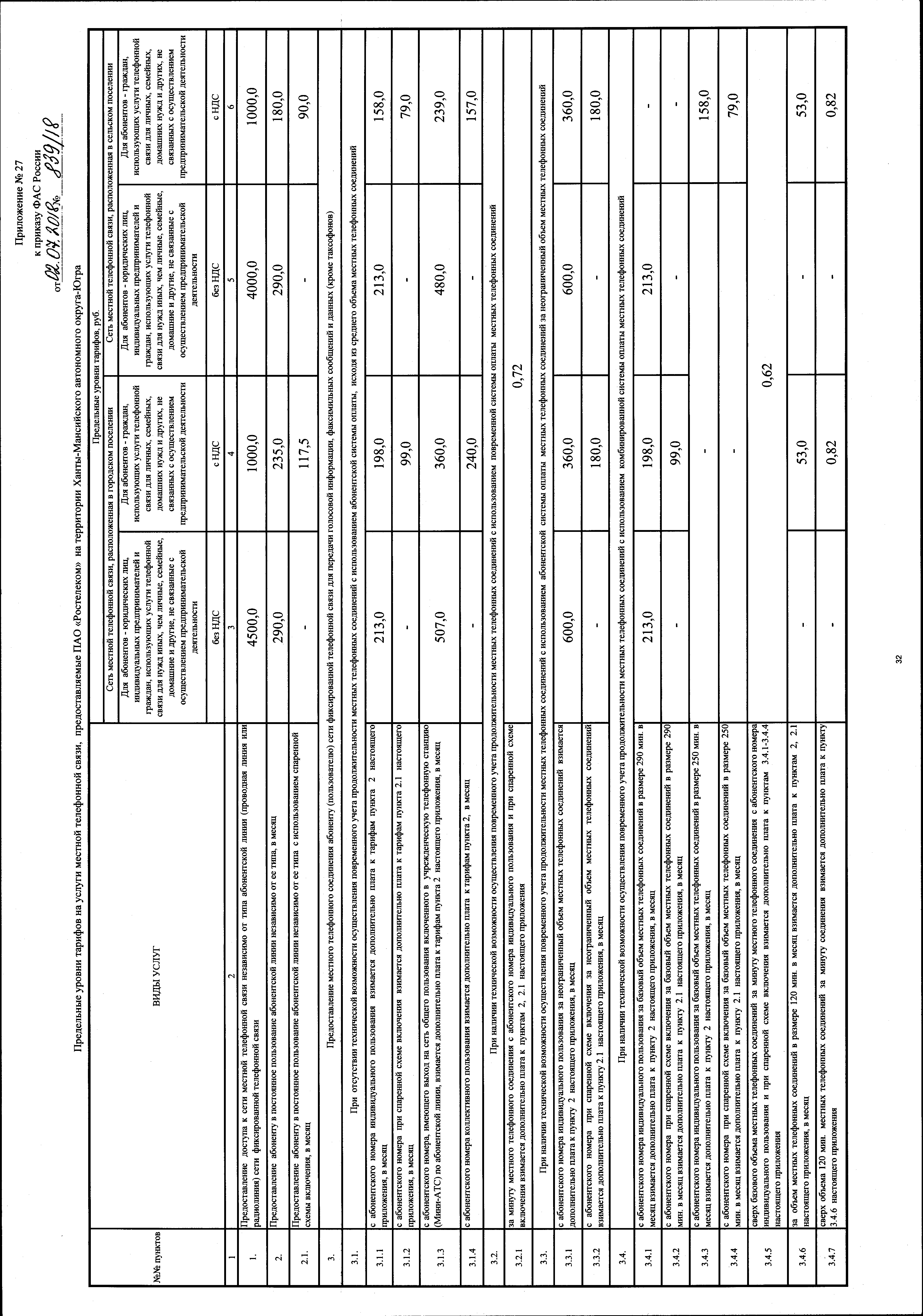 "Об утверждении тарифов на услуги местной, внутризоновой телефонной связи, на услугу по передаче внутренней телеграммы, предоставляемые ПАО "Ростелеком"