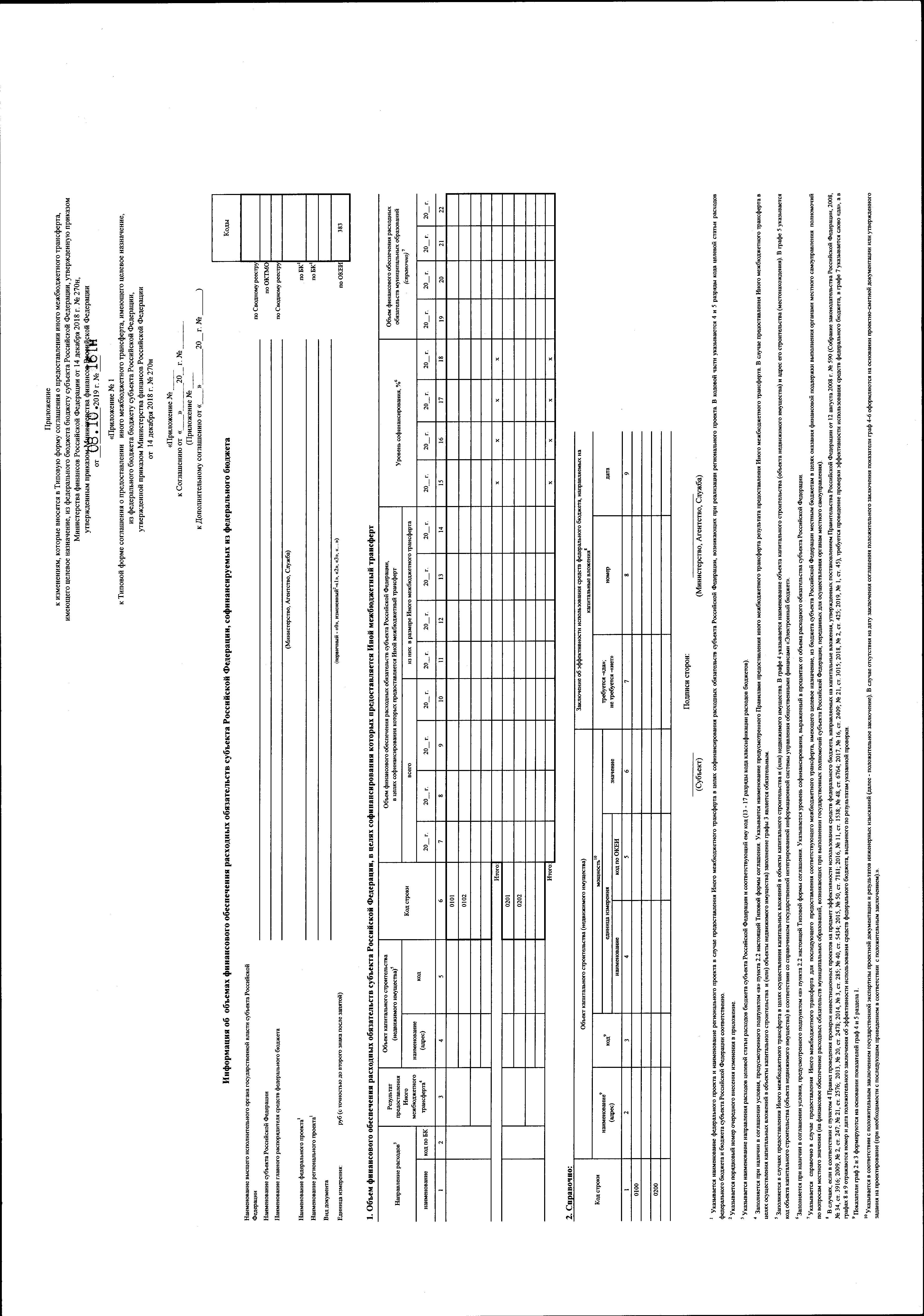 "О внесении изменений в Типовую форму соглашения о предоставлении иного межбюджетного трансферта, имеющего целевое назначение, из федерального бюджета бюджету субъекта Российской Федерации, утвержденную приказом Министерства финансов Российской Федерации от 14 декабря 2018 г. № 270н"