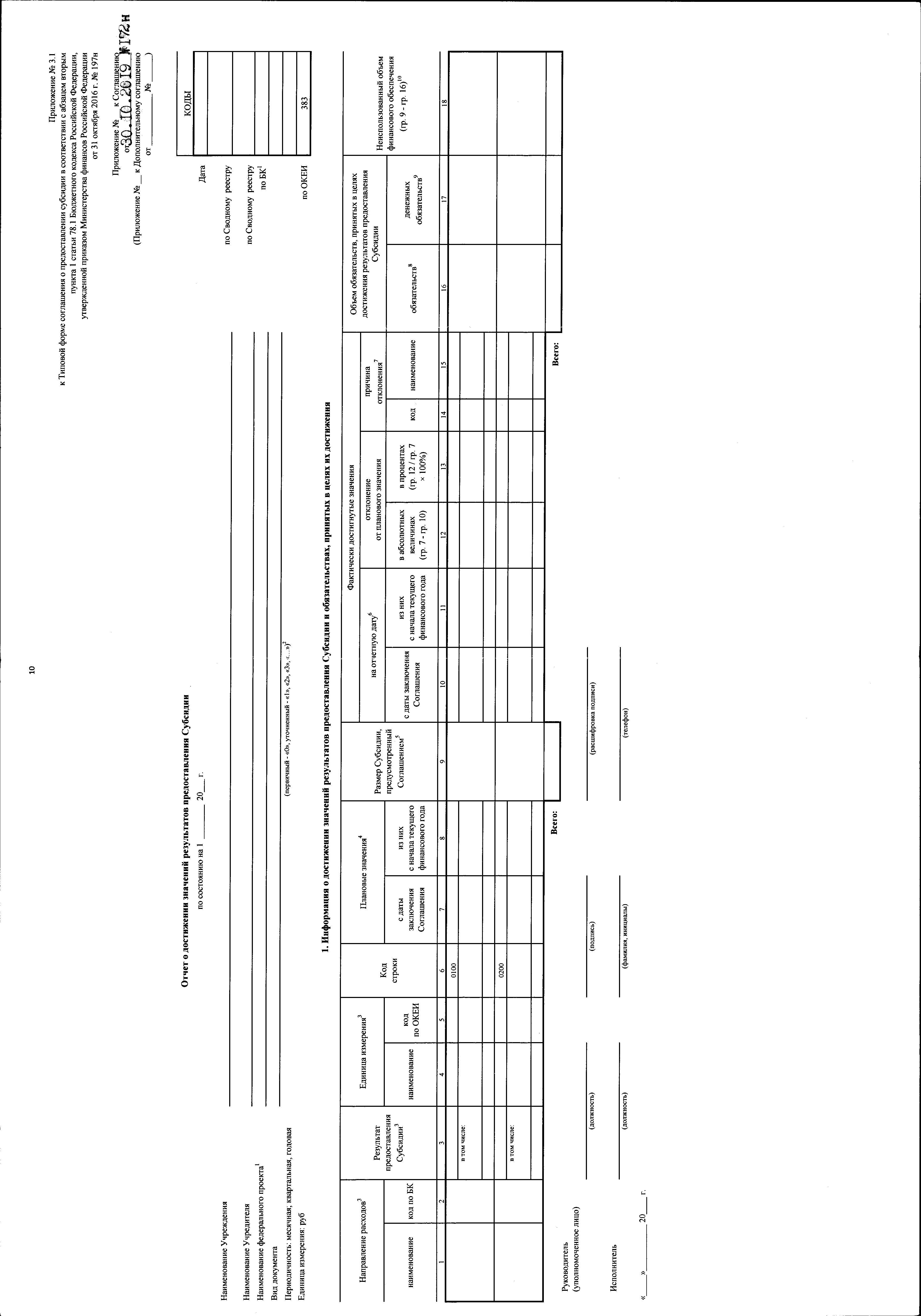 "О внесении изменений в Типовую форму соглашения о предоставлении из федерального бюджета федеральному бюджетному или автономному учреждению субсидии в соответствии с абзацем вторым пункта 1 статьи 78.1 Бюджетного кодекса Российской Федерации, утвержденную приказом Министерства финансов Российской Федерации от 31 октября 2016 г. № 197н"