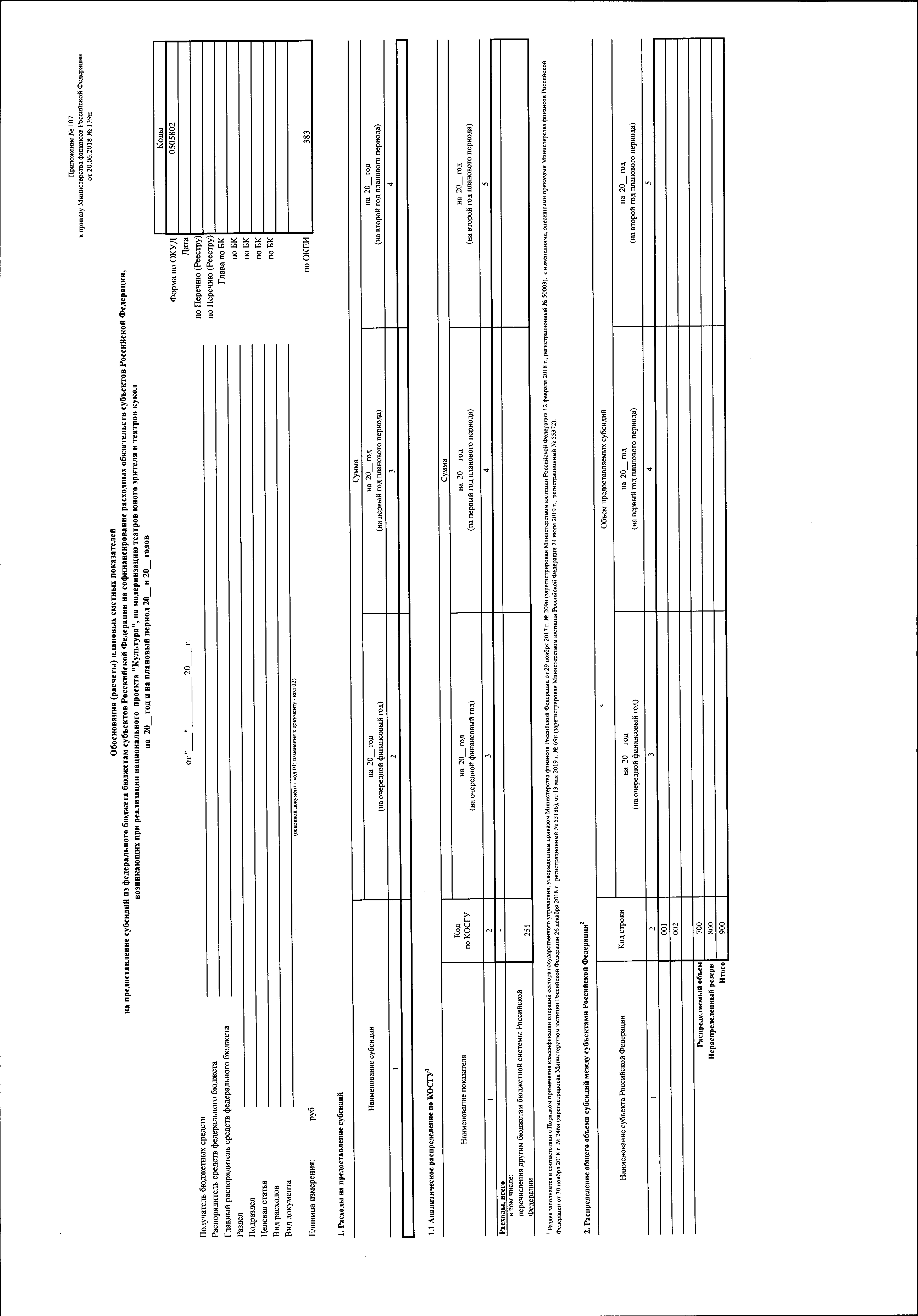 "О внесении изменений в приказ Министерства финансов Российской Федерации от 20 июня 2018 г. № 139н "Об утверждении форм обоснований (расчетов) плановых сметных показателей, применяемых при составлении и ведении бюджетных смет федеральных казенных учреждений"
