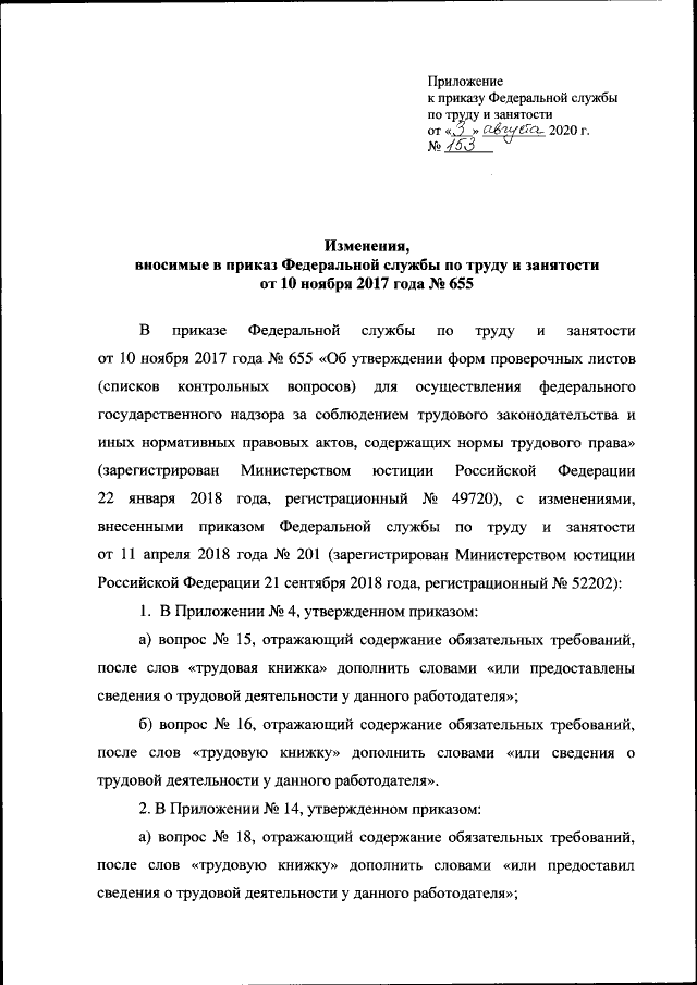 Приказ Федеральной службы по труду и занятости от 03.08.2020 № 153