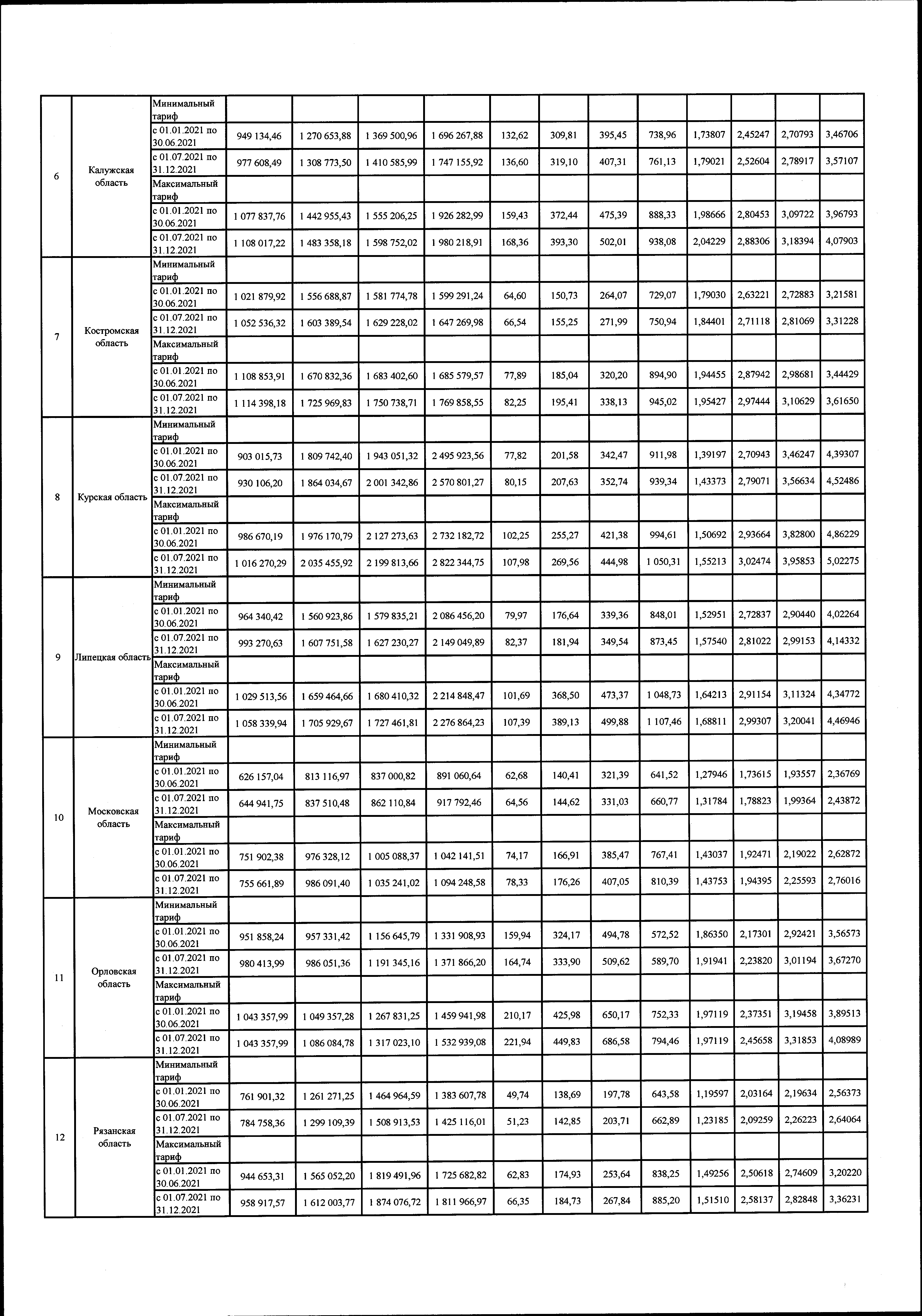 "Об утверждении предельных минимальных и максимальных уровней тарифов на услуги по передаче электрической энергии, оказываемые потребителям, не относящимся к населению и приравненным к нему категориям потребителей, по субъектам Российской Федерации на 2021 год"