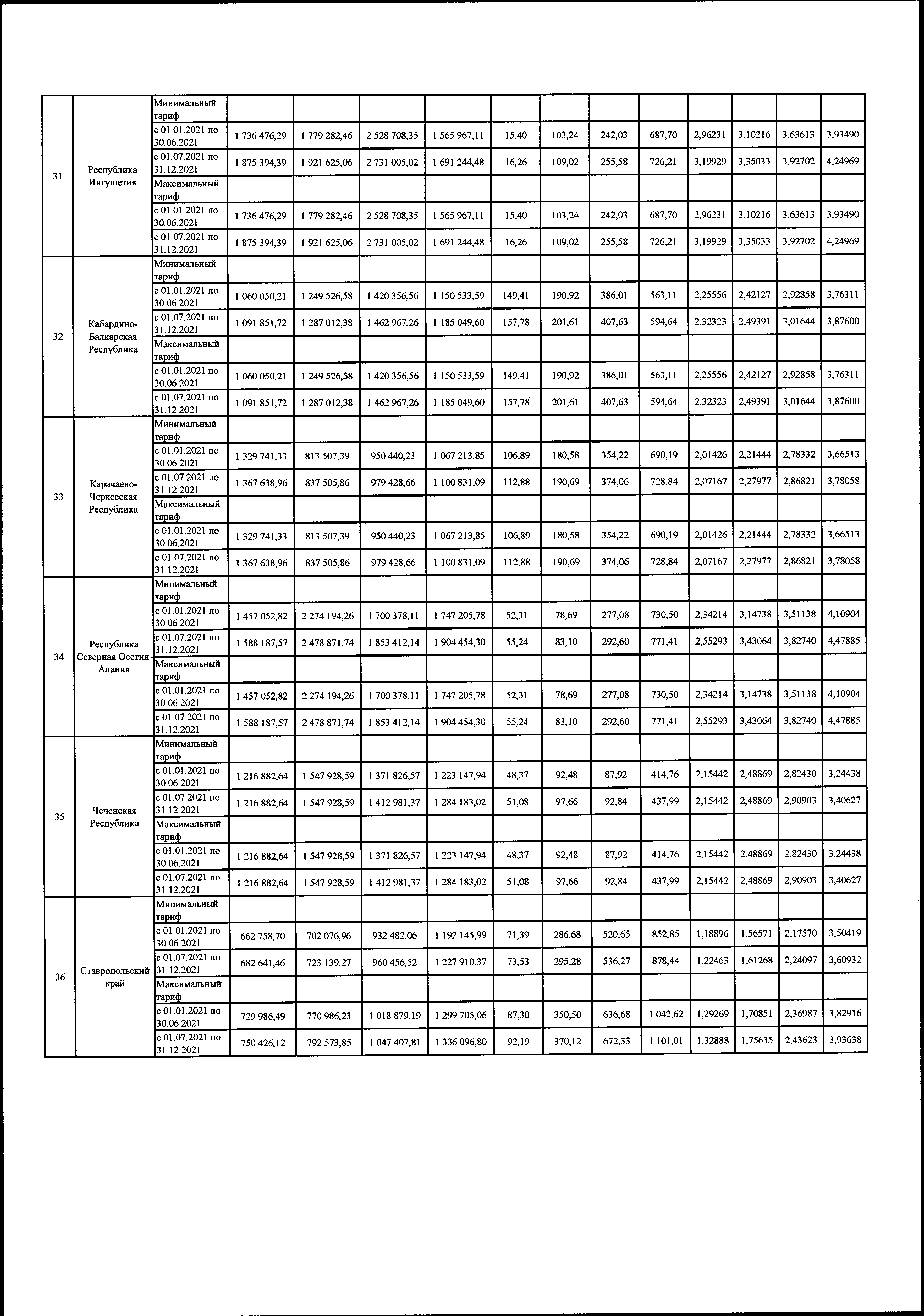 "Об утверждении предельных минимальных и максимальных уровней тарифов на услуги по передаче электрической энергии, оказываемые потребителям, не относящимся к населению и приравненным к нему категориям потребителей, по субъектам Российской Федерации на 2021 год"