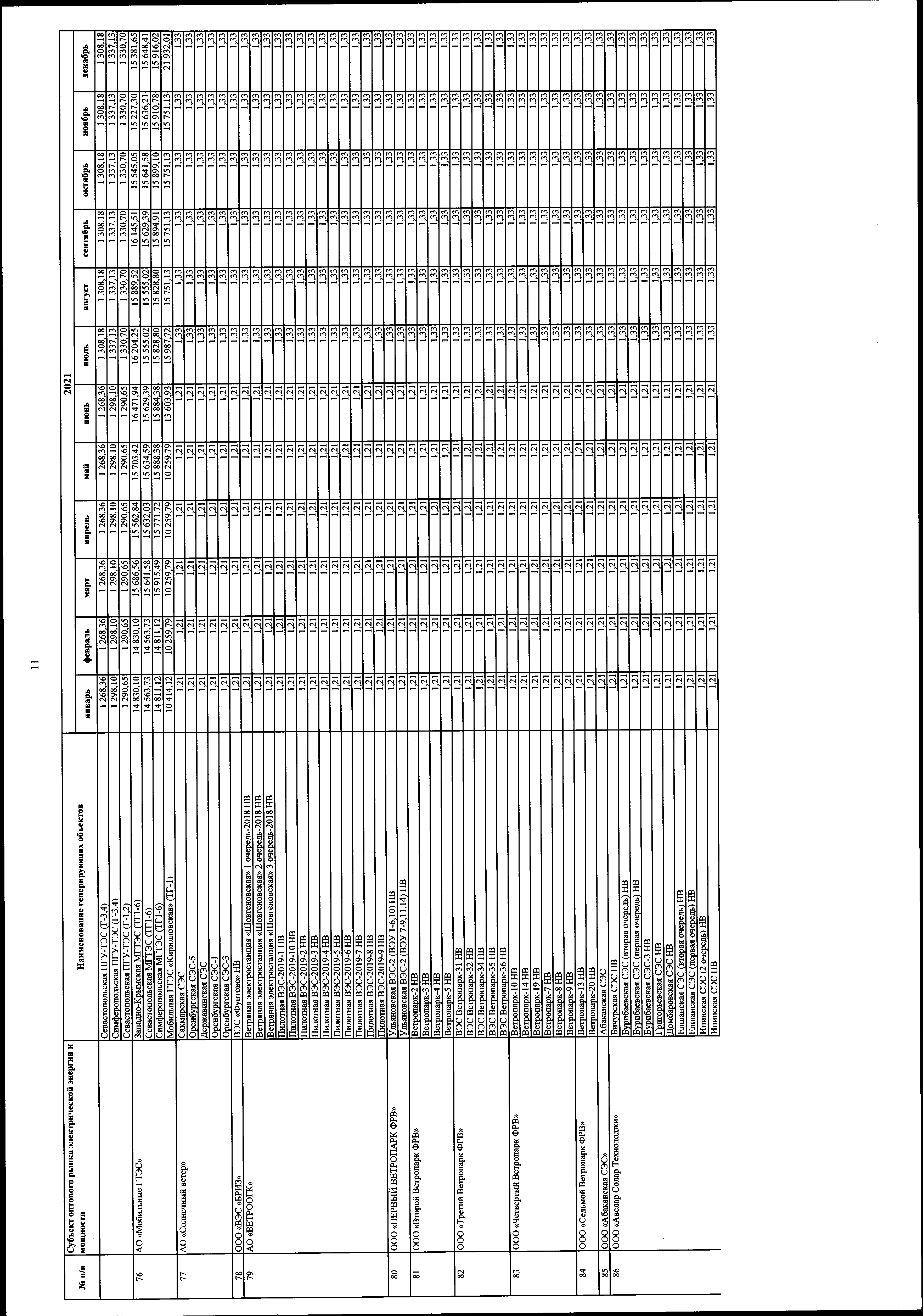 "Об утверждении цен (тарифов) на электрическую энергию на 2021 год, поставляемую в условиях ограничения или отсутствия конкуренции при введении государственного регулирования"