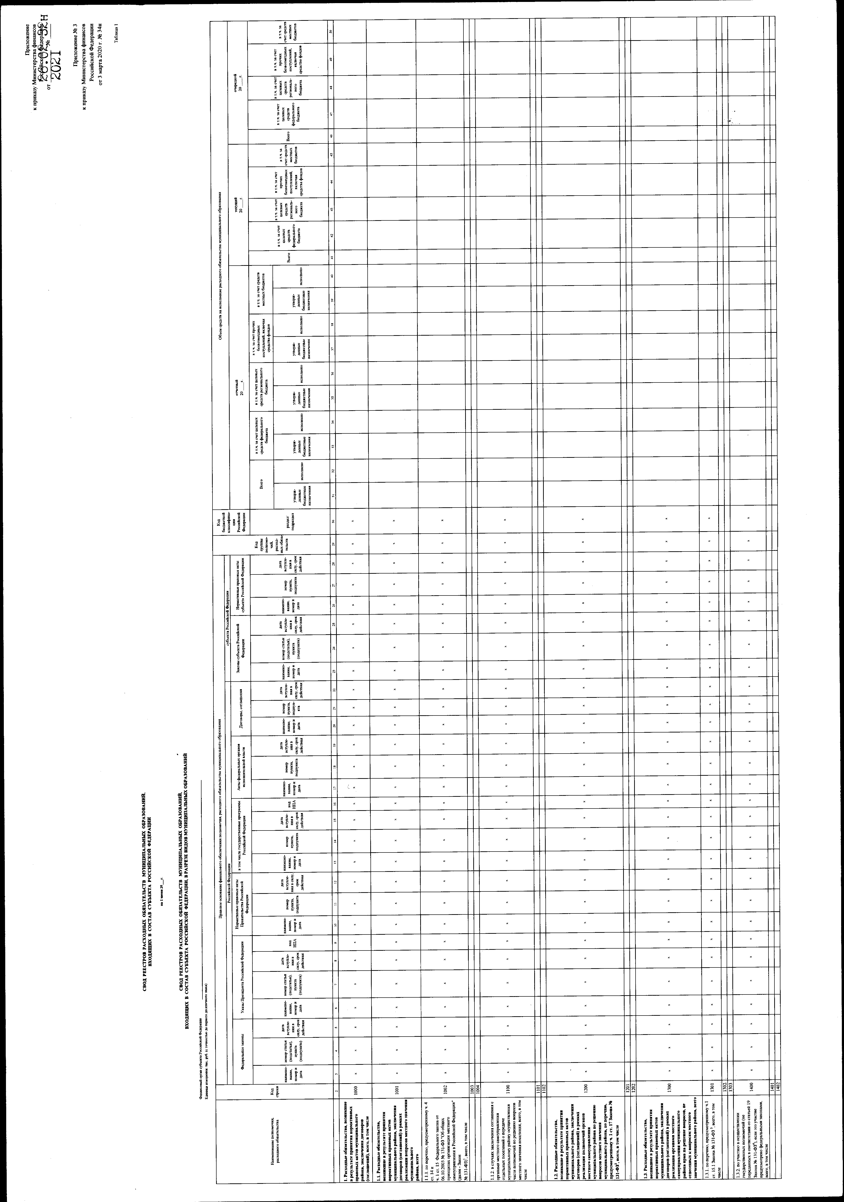 "О внесении изменения в приложение № 3 к приказу Министерства финансов Российской Федерации от 3 марта 2020 г. № 34н"
