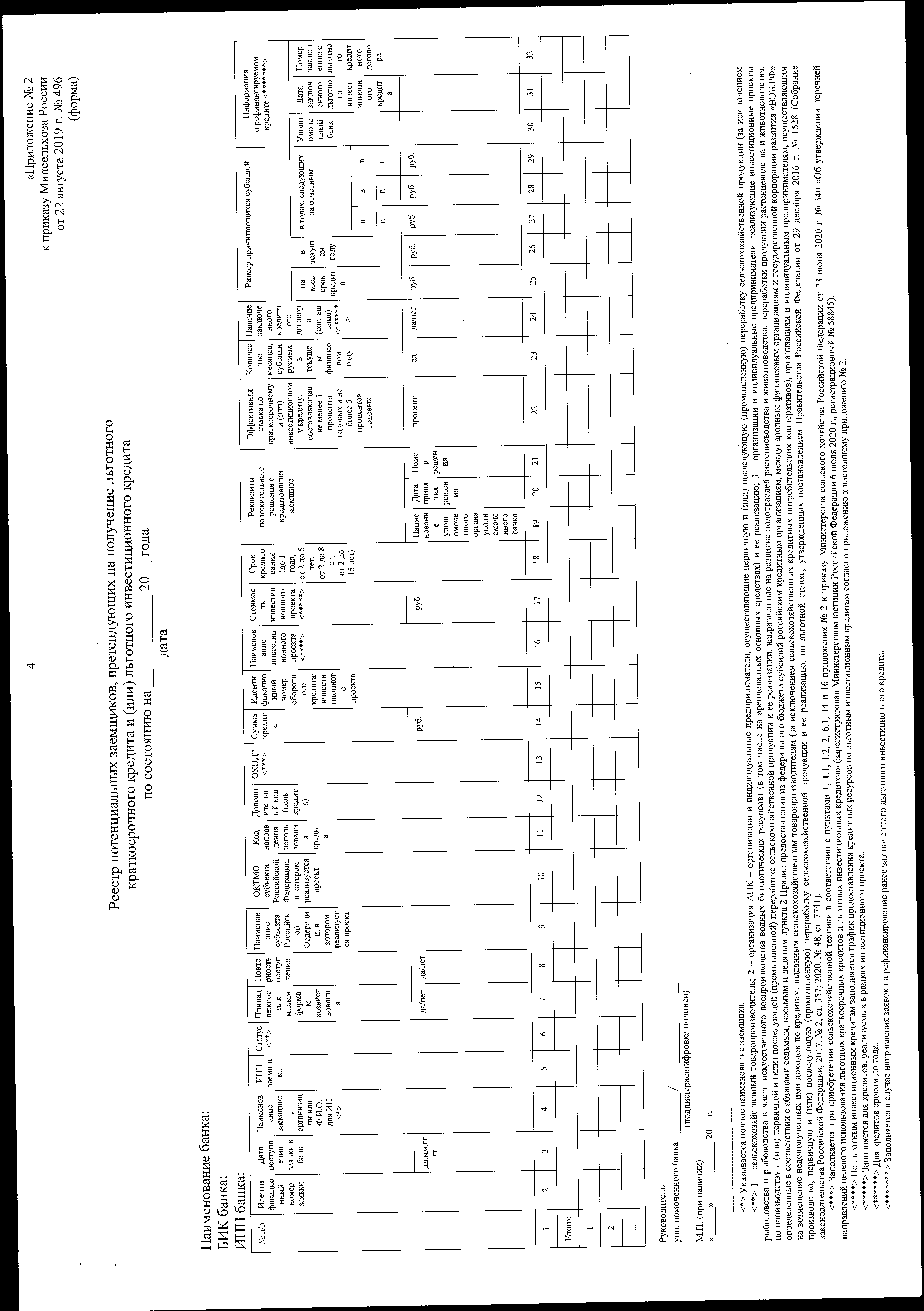 "О внесении изменений в приложения к приказу Министерства сельского хозяйства Российской Федерации от 22 августа 2019 г. № 496"