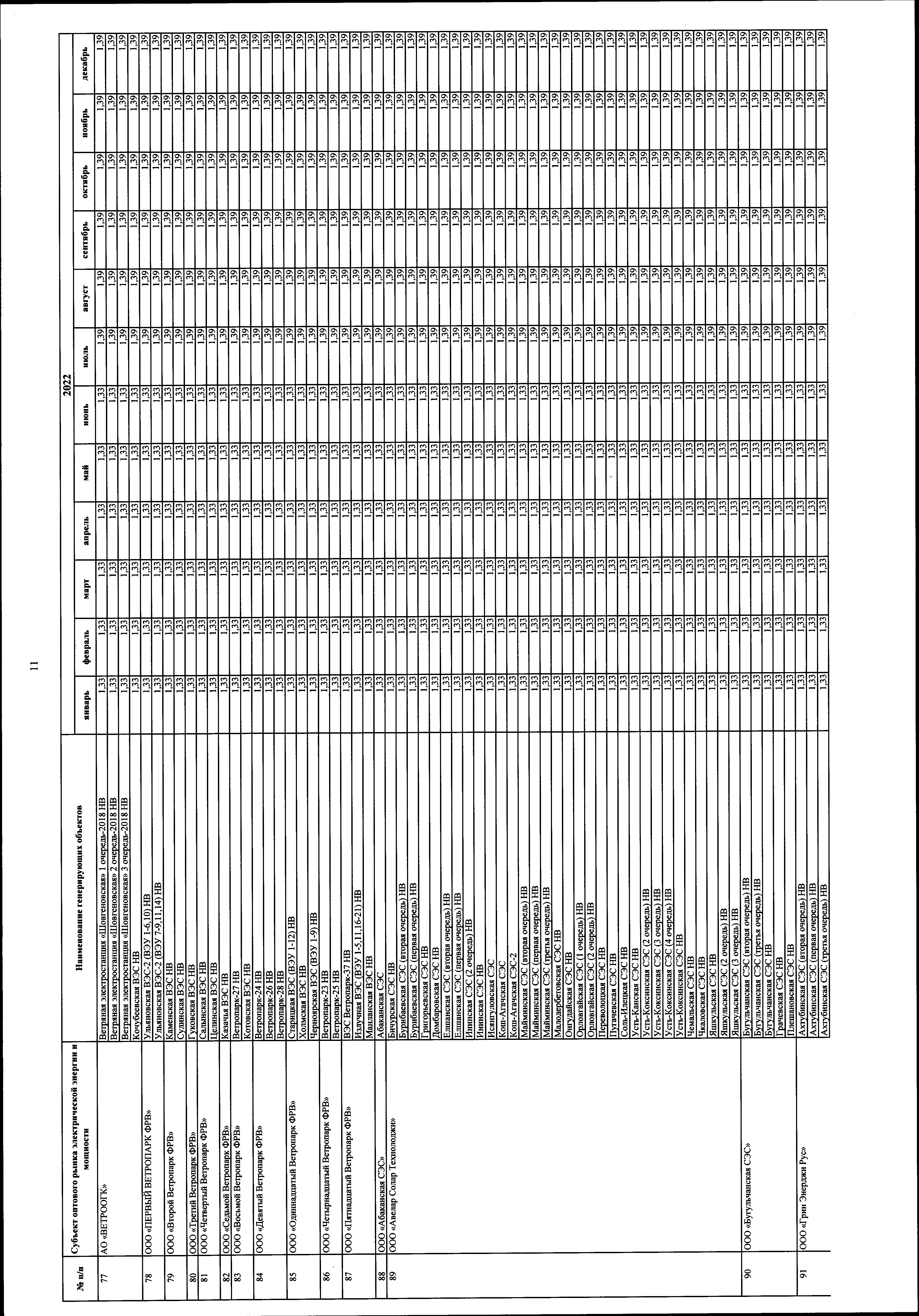 "Об утверждении цен (тарифов) на электрическую энергию на 2022 год, поставляемую в условиях ограничения или отсутствия конкуренции при введении государственного регулирования"
