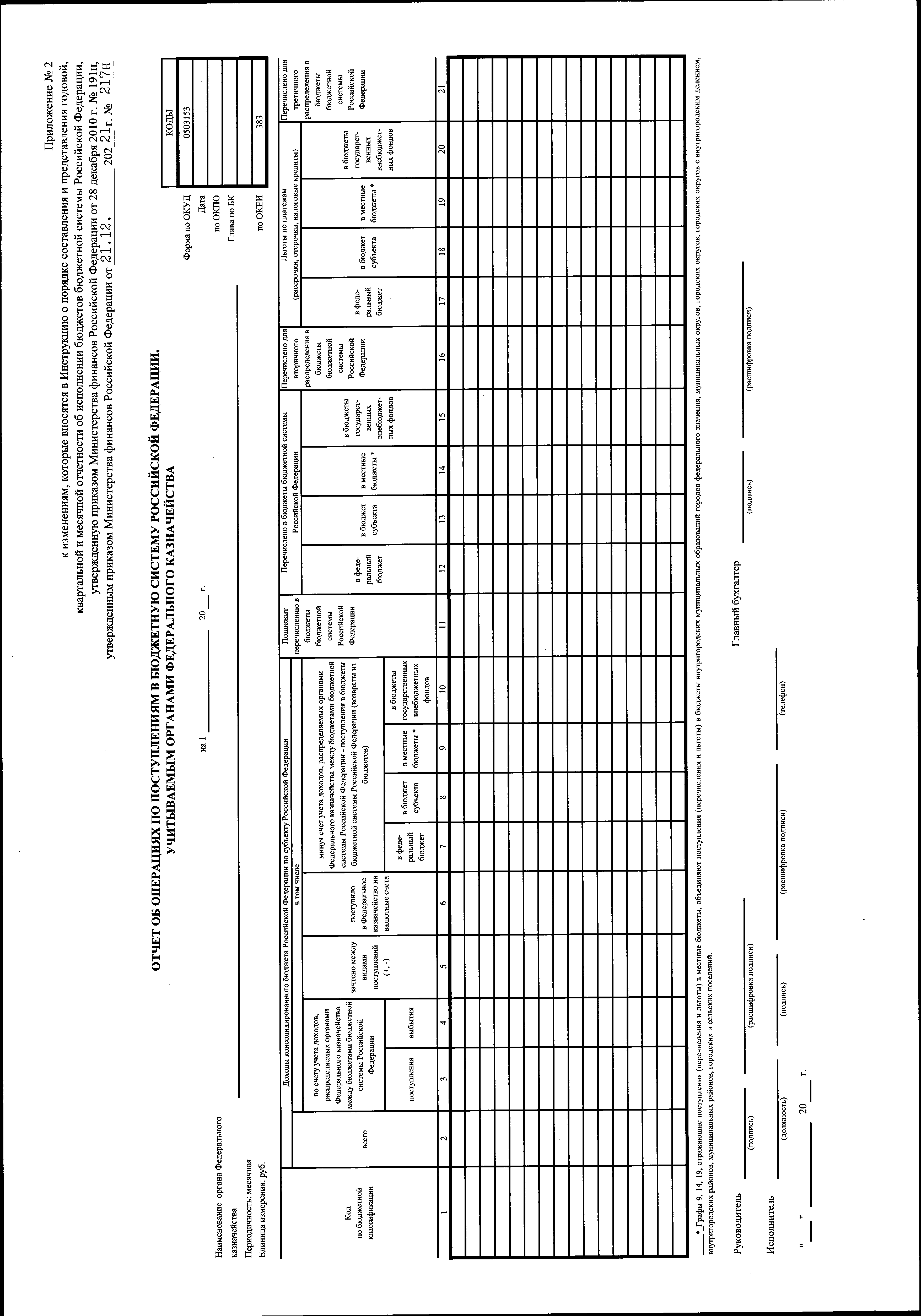 "О внесении изменений в Инструкцию о порядке составления и представления годовой, квартальной и месячной отчетности об исполнении бюджетов бюджетной системы Российской Федерации, утвержденную приказом Министерства финансов Российской Федерации от 28 декабря 2010 г. № 191н"