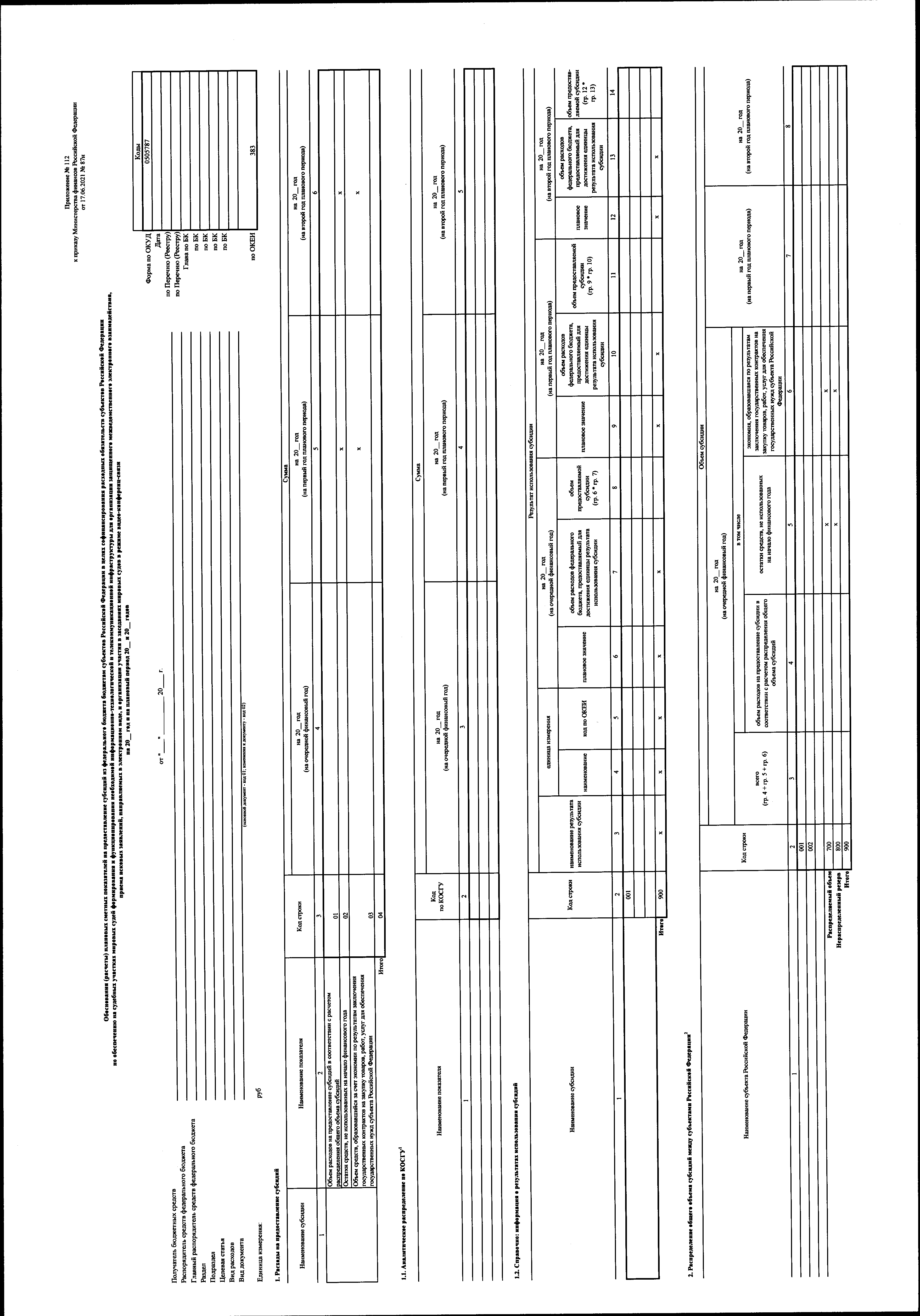 "О внесении изменений в приказ Министерства финансов Российской Федерации от 17 июня 2021 г. № 87н "Об утверждении форм обоснований (расчетов) плановых сметных показателей, применяемых при составлении и ведении бюджетных смет федеральных казенных учреждений"