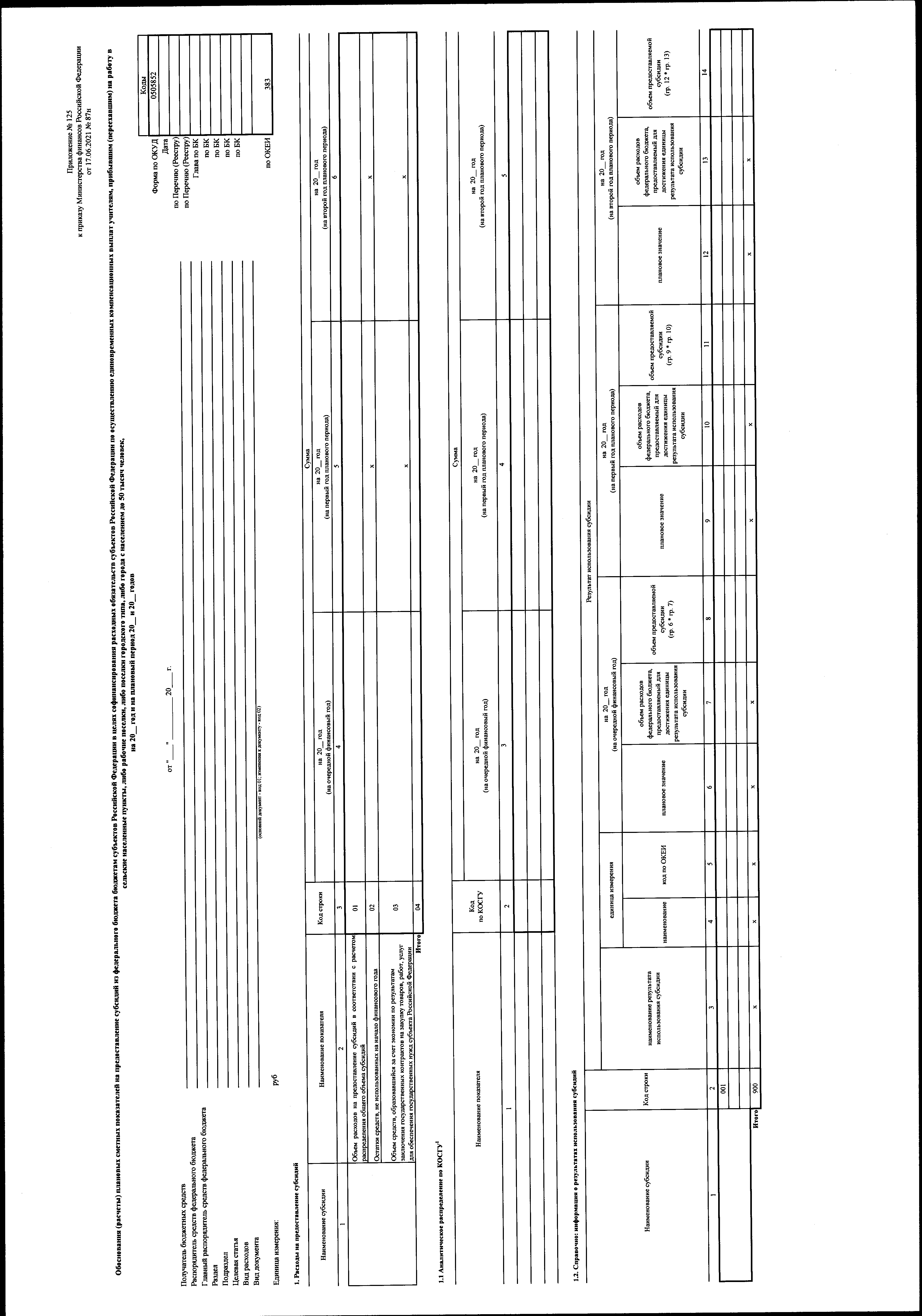 "О внесении изменений в приказ Министерства финансов Российской Федерации от 17 июня 2021 г. № 87н "Об утверждении форм обоснований (расчетов) плановых сметных показателей, применяемых при составлении и ведении бюджетных смет федеральных казенных учреждений"