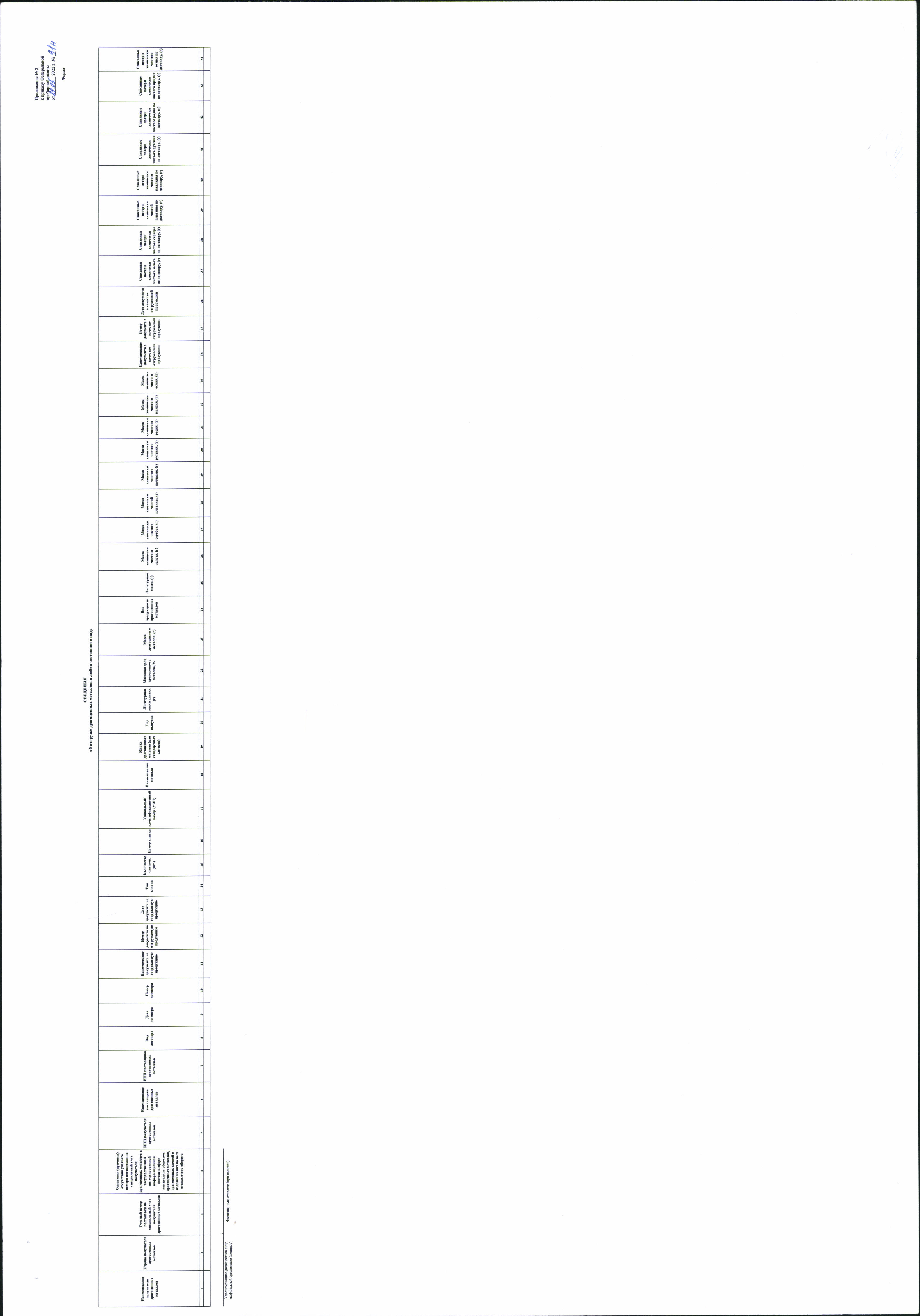 "Об утверждении форм сведений о поступлении и отгрузке драгоценных металлов в любом состоянии и виде"