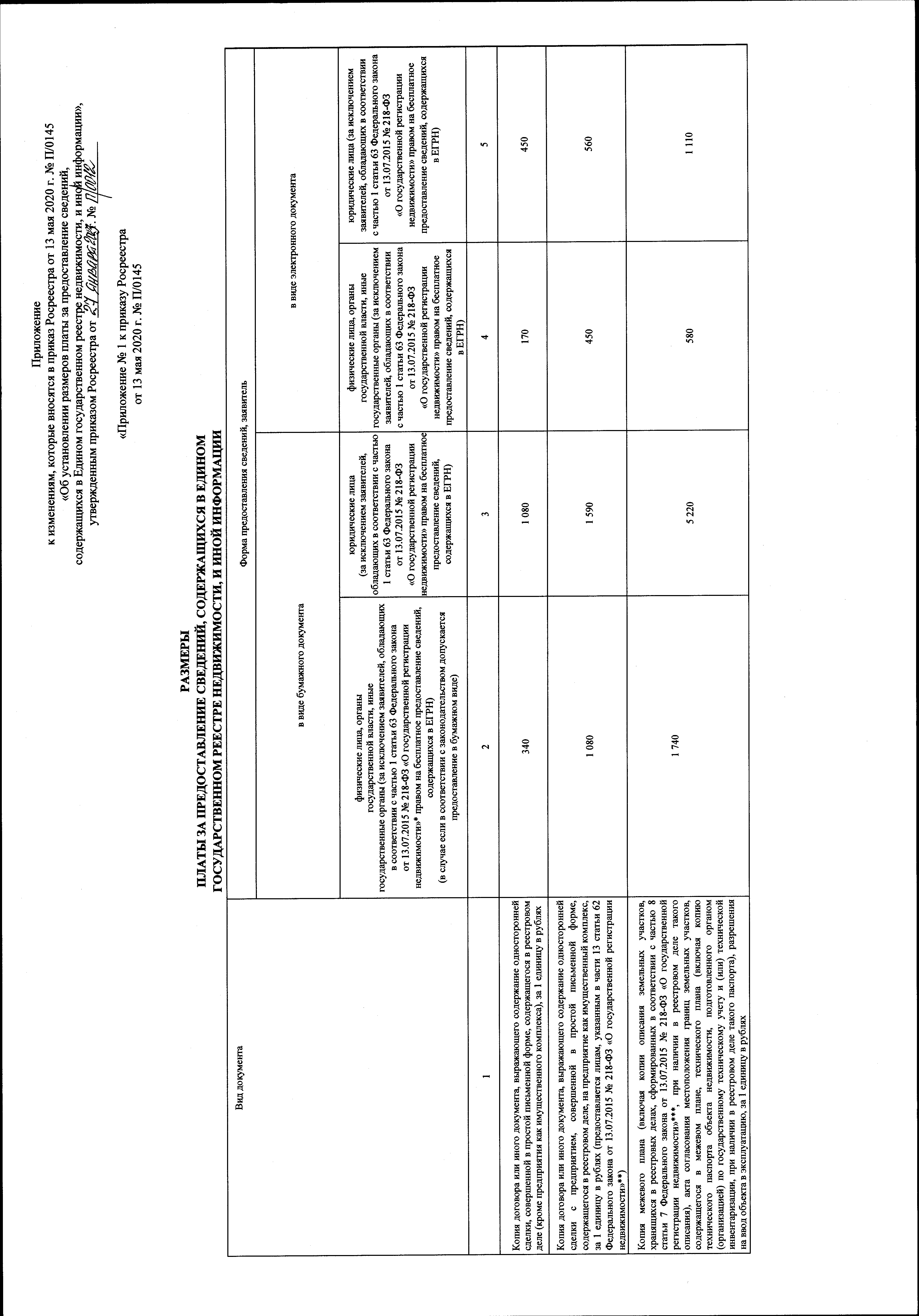 "О внесении изменений в приказ Росреестра от 13 мая 2020 г. № П/0145 "Об установлении размеров платы за предоставление сведений, содержащихся в Едином государственном реестре недвижимости, и иной информации"