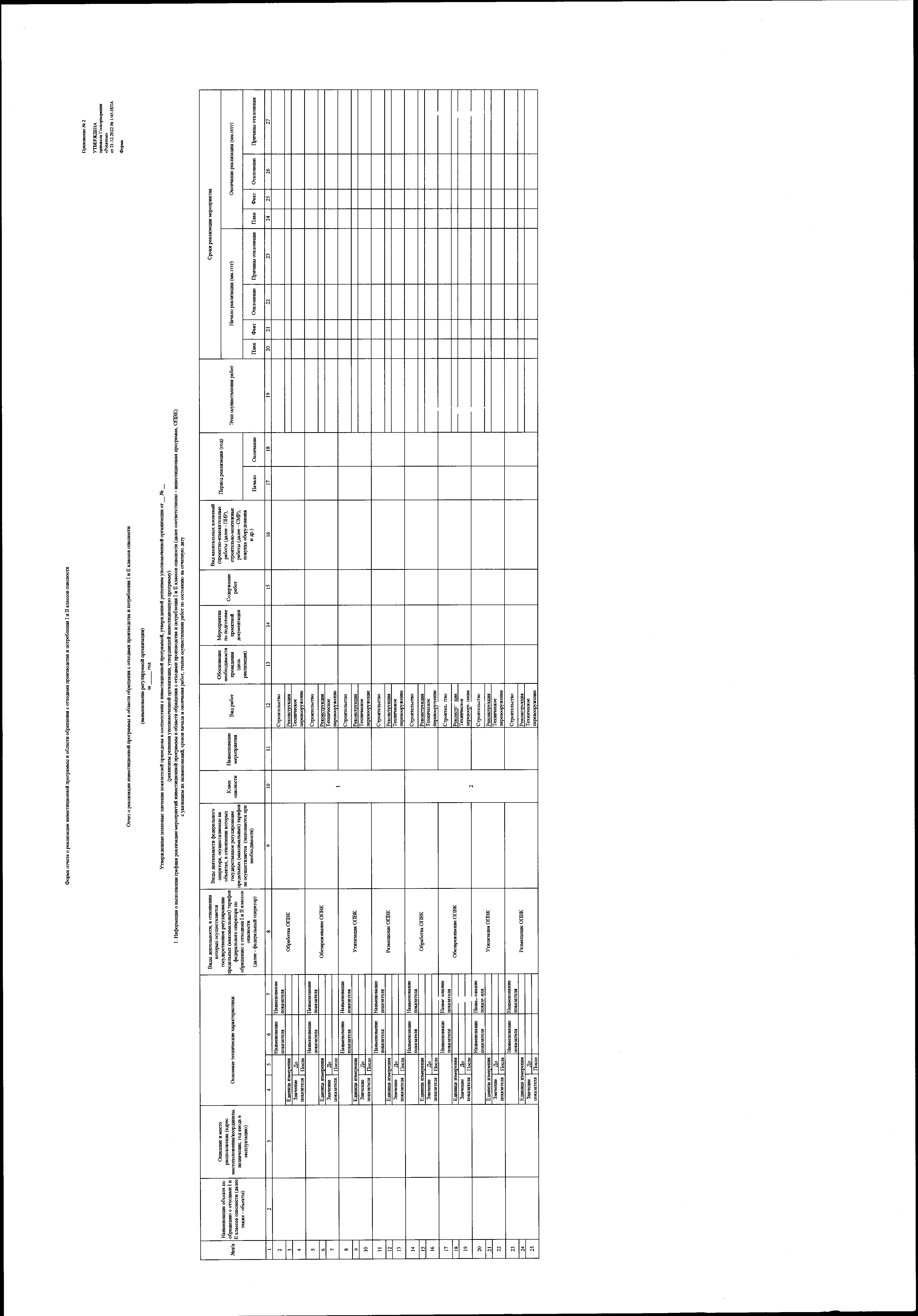 "Об утверждении форм инвестиционной программы в области обращения с отходами производства и потребления I и II классов опасности и отчета о реализации инвестиционной программы в области обращения с отходами производства и потребления I и II классов опасности"