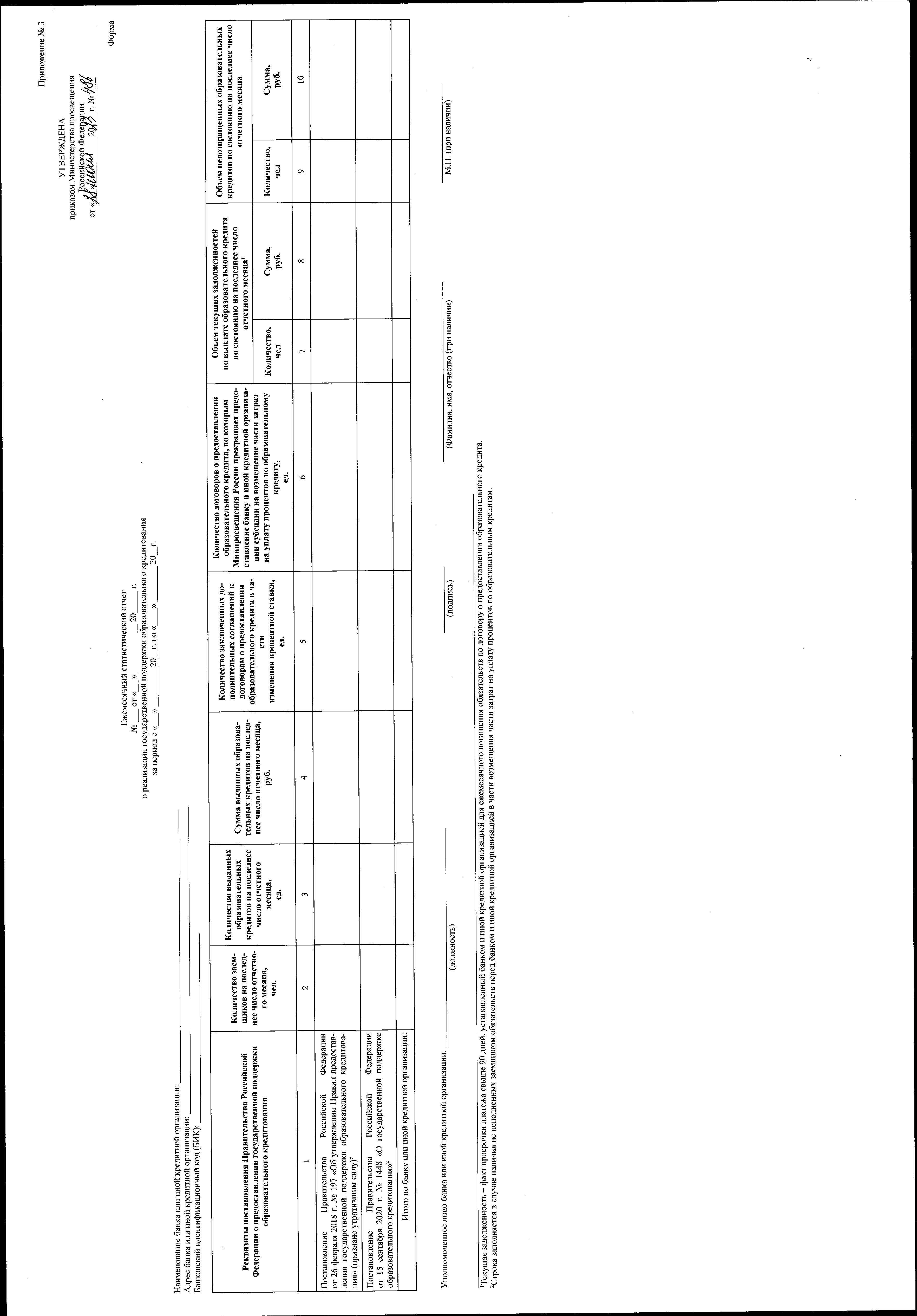 "Об утверждении форм документов, предусмотренных Правилами предоставления государственной поддержки образовательного кредитования, утвержденными постановлением Правительства Российской Федерации от 15 сентября 2020 г. № 1448"