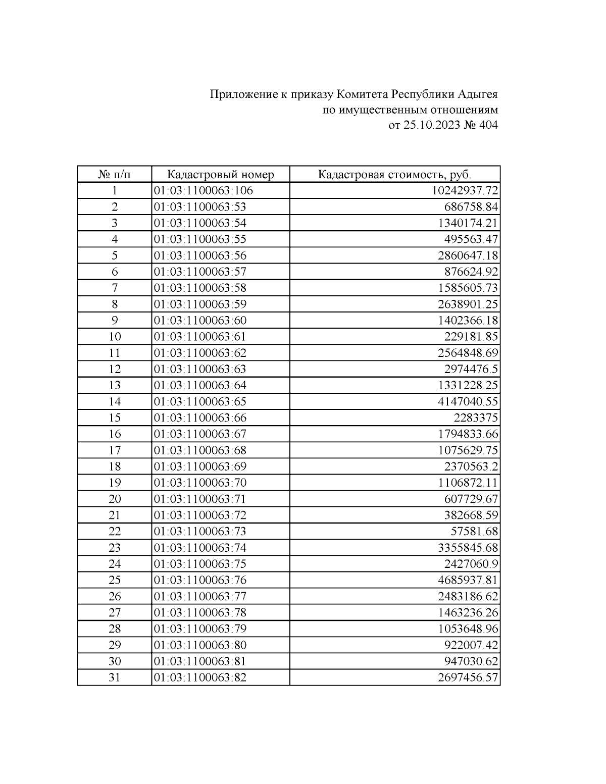 Приказ Комитета Республики Адыгея по имущественным отношениям от 25.10.2023 № 404