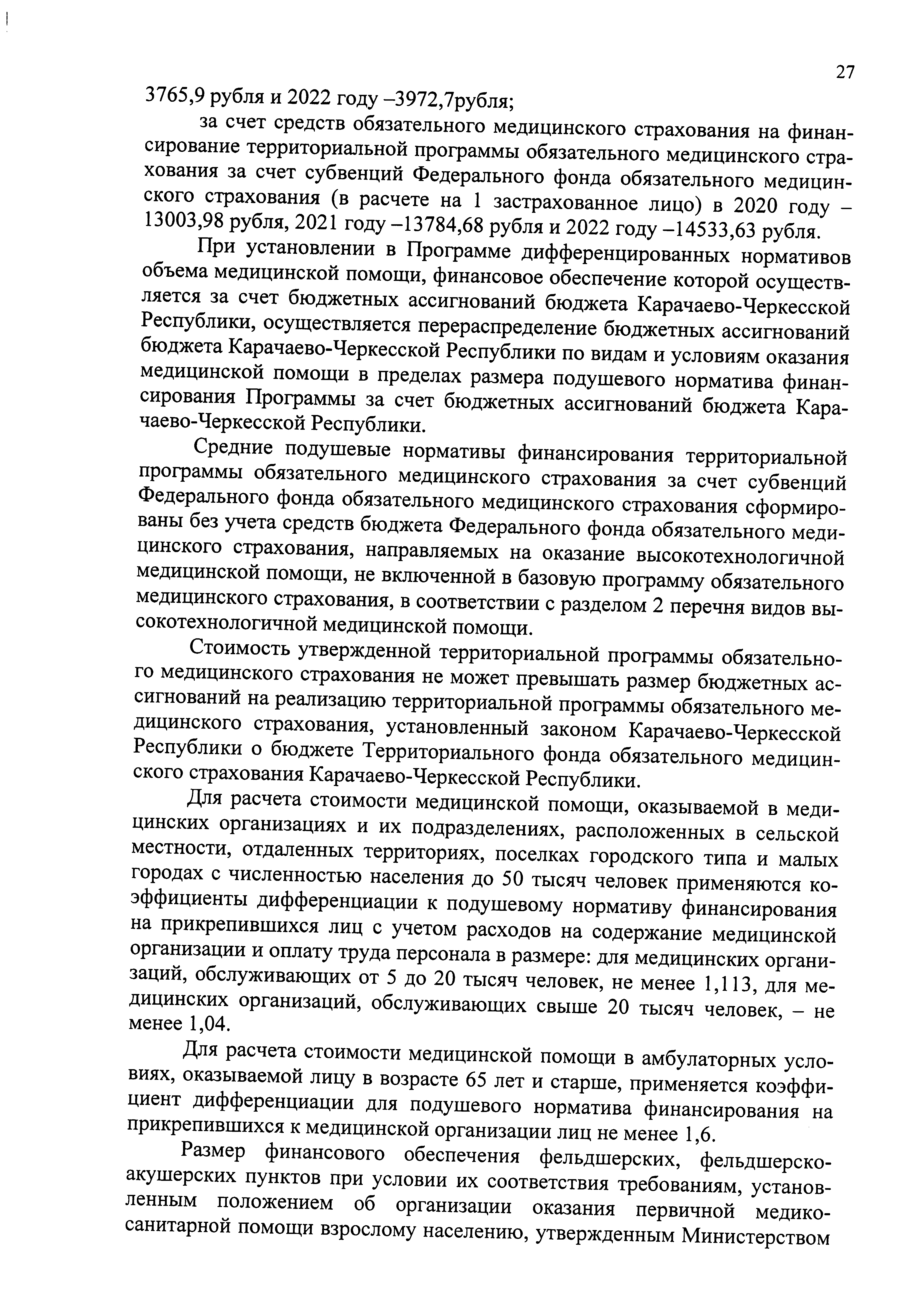"О Территориальной программе государственных гарантий бесплатного оказания гражданам медицинской помощи на 2020 и на плановый период 2021 и 2022 годов в Карачаево-Черкесской Республике"