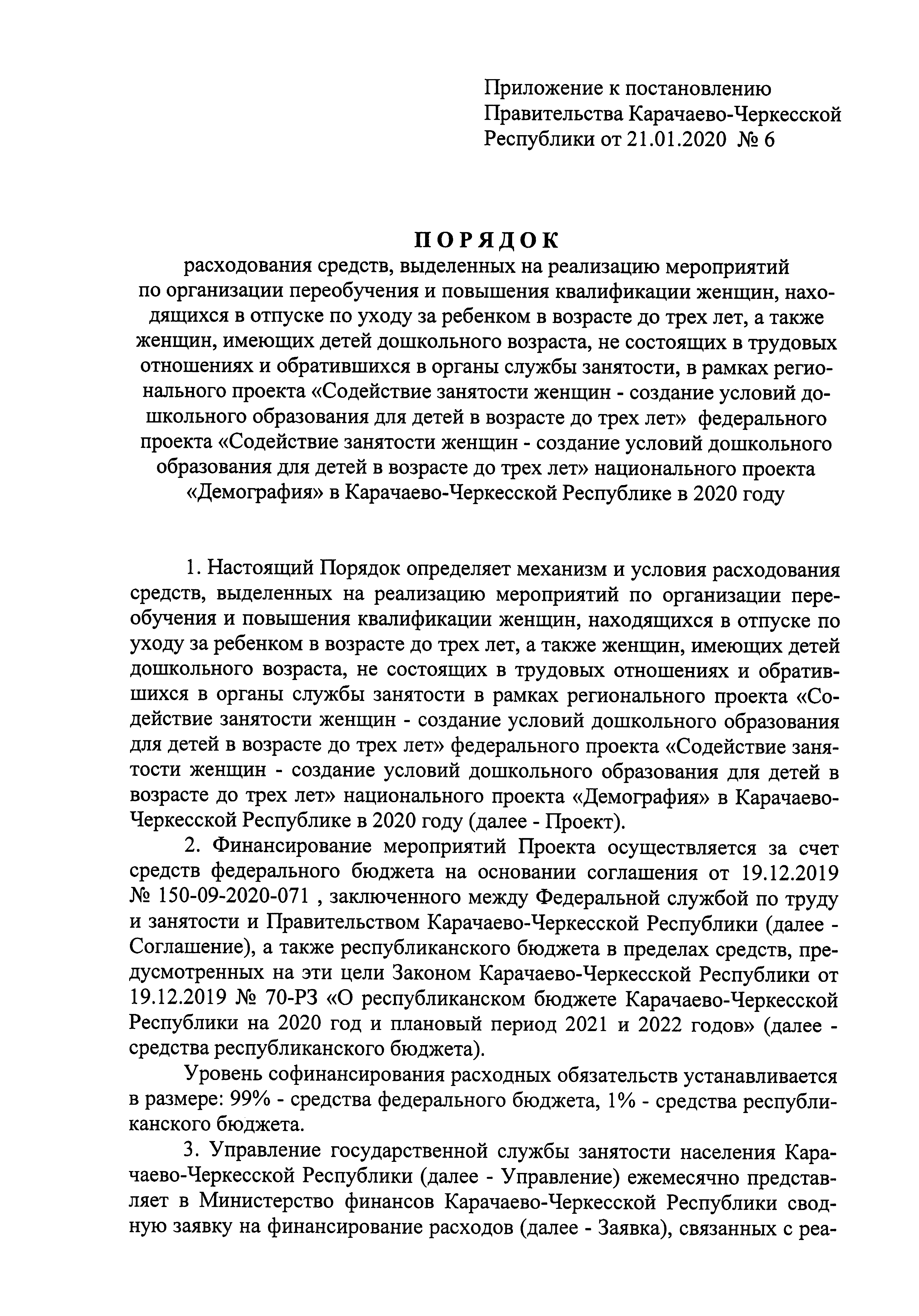 Постановление Правительства Карачаево-Черкесской Республики от 21.01.2020 № 6