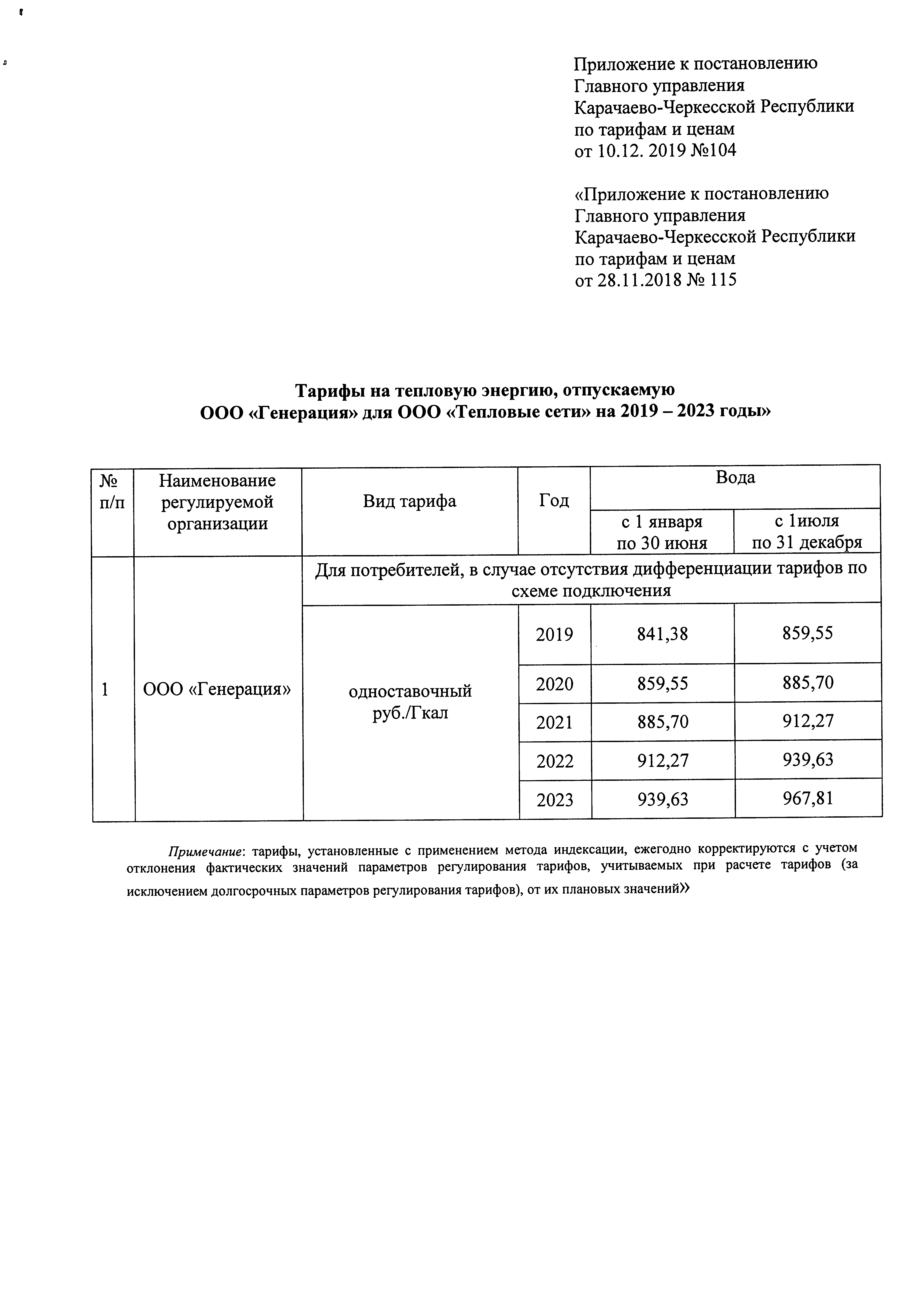 "О внесении изменения в постановление Главного управления Карачаево-Черкесской Республики по тарифам и ценам от 28 ноября 2018 г. № 115 "Об установлении тарифов на тепловую энергию, отпускаемую ООО "Генерация" для ООО "Тепловые сети" на 2019 – 2023 годы"