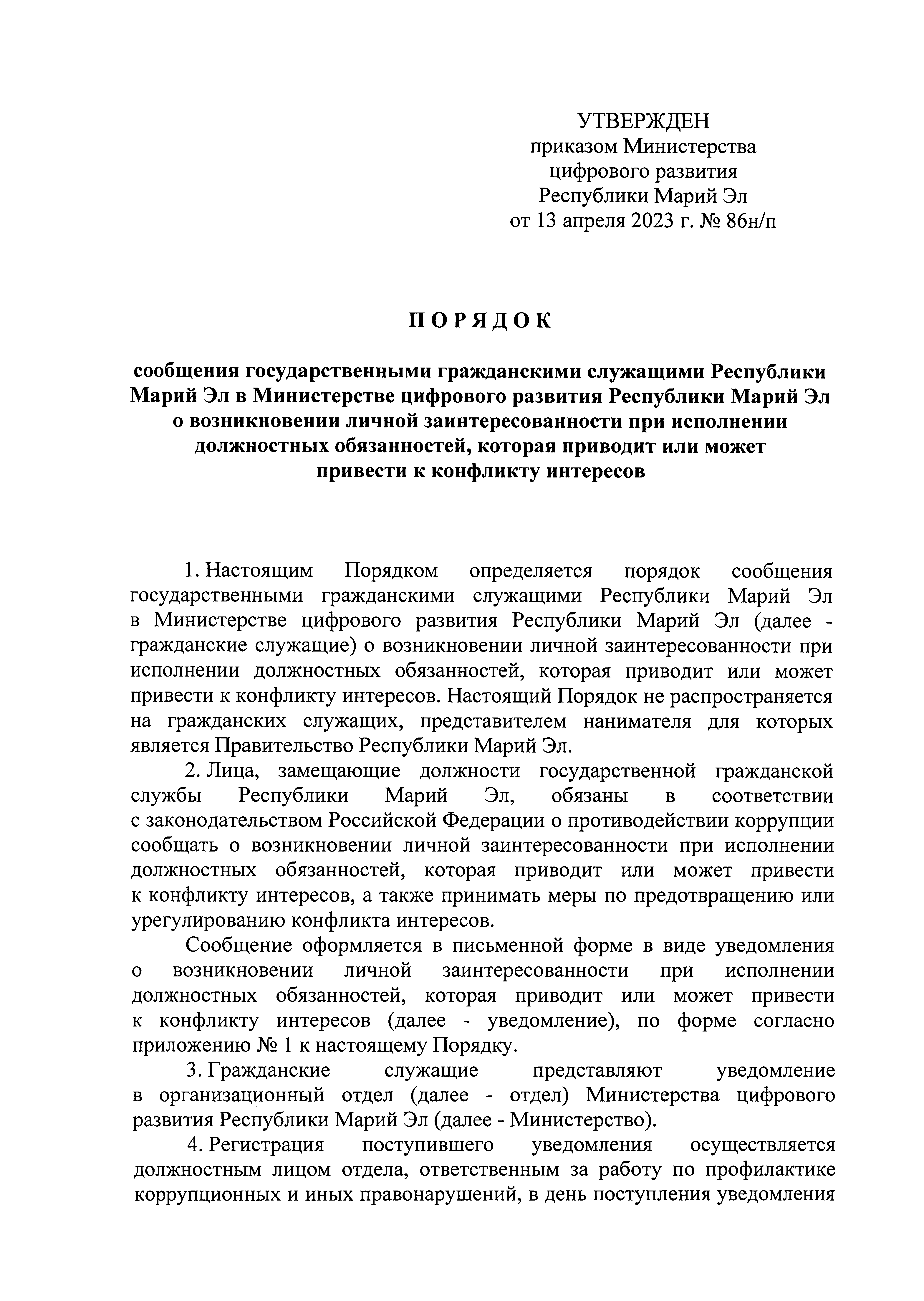 Приказ Министерства цифрового развития Республики Марий Эл от 13.04.2023 № 86н/п