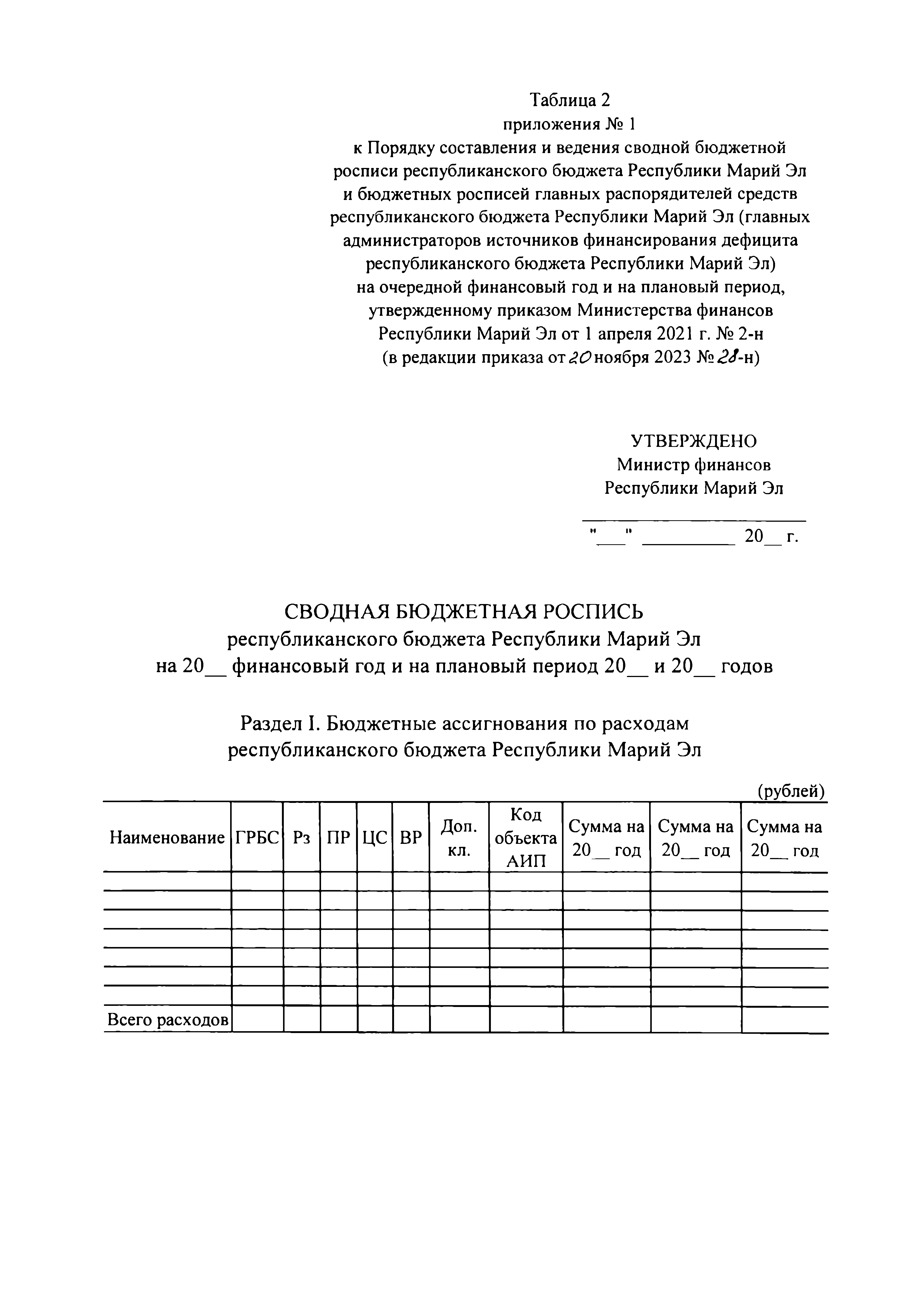 "О внесении изменений в приказ Министерства финансов Республики Марий Эл от 1 апреля 2021 г. № 2-н"