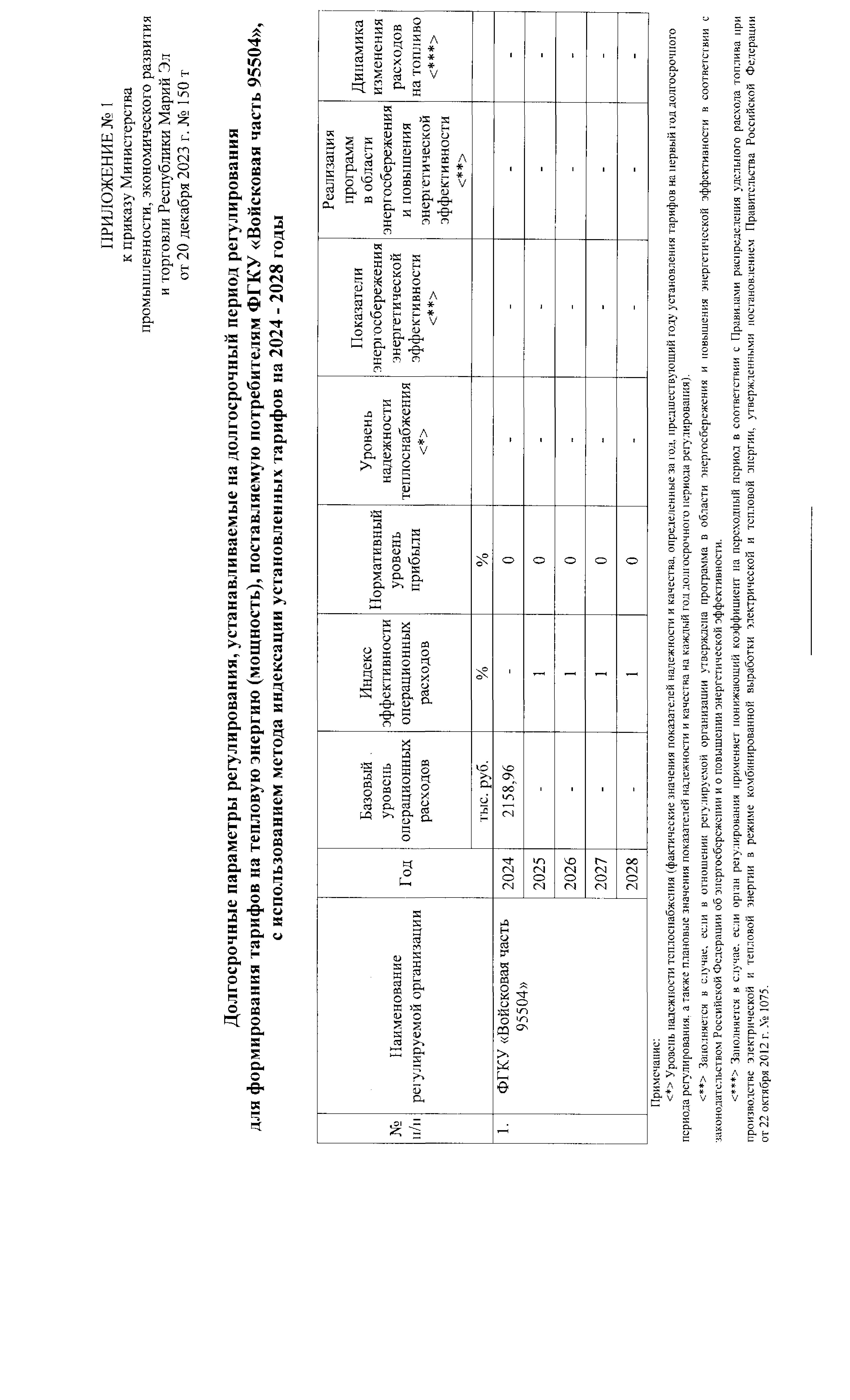 "Об установлении тарифов на тепловую энергию (мощность), поставляемую потребителям ФГКУ "Войсковая часть 95504", на 2024 - 2028 годы"