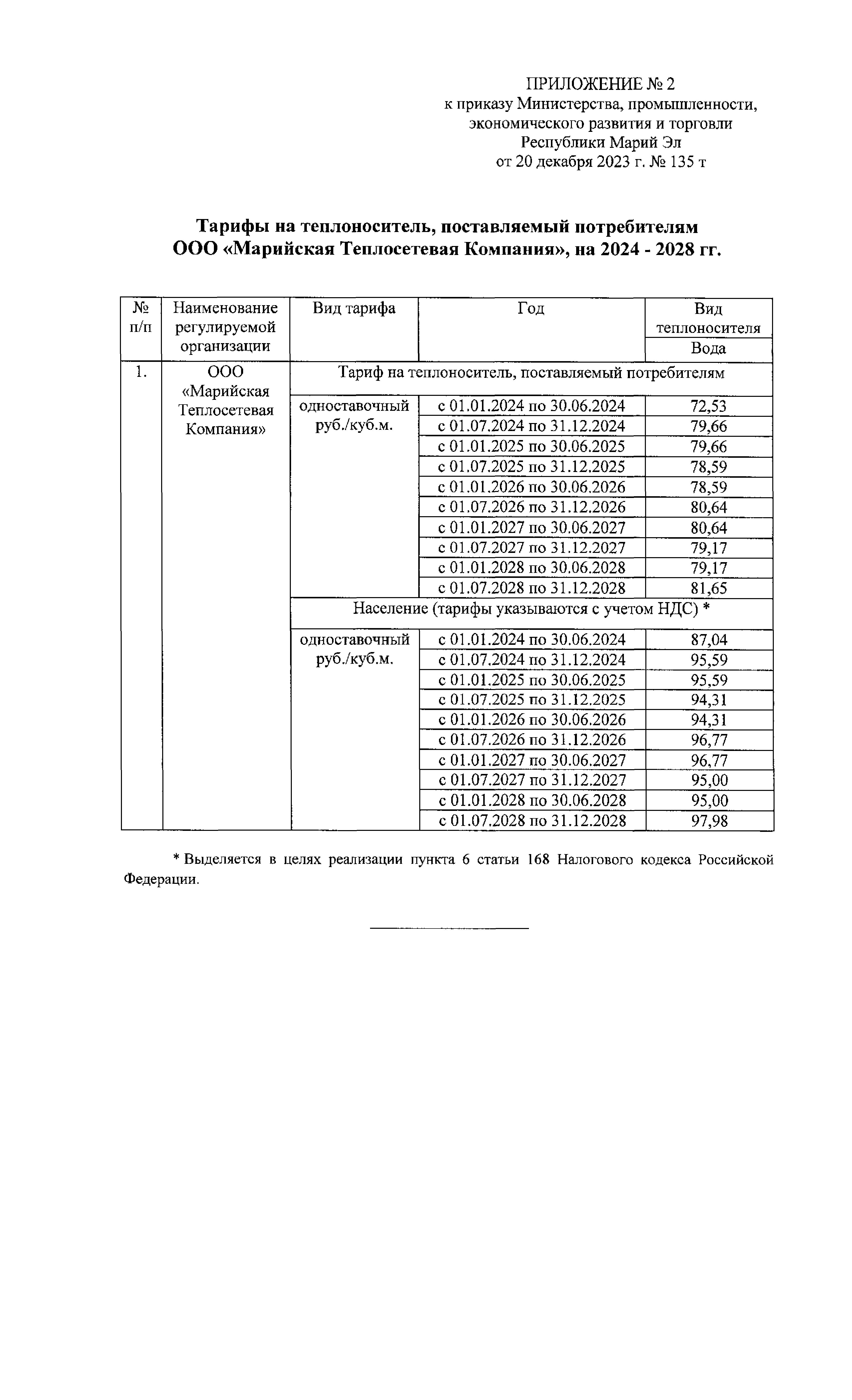 "Об установлении тарифов на теплоноситель, поставляемый потребителям ООО "Марийская Теплосетевая Компания", на 2024 - 2028 годы"