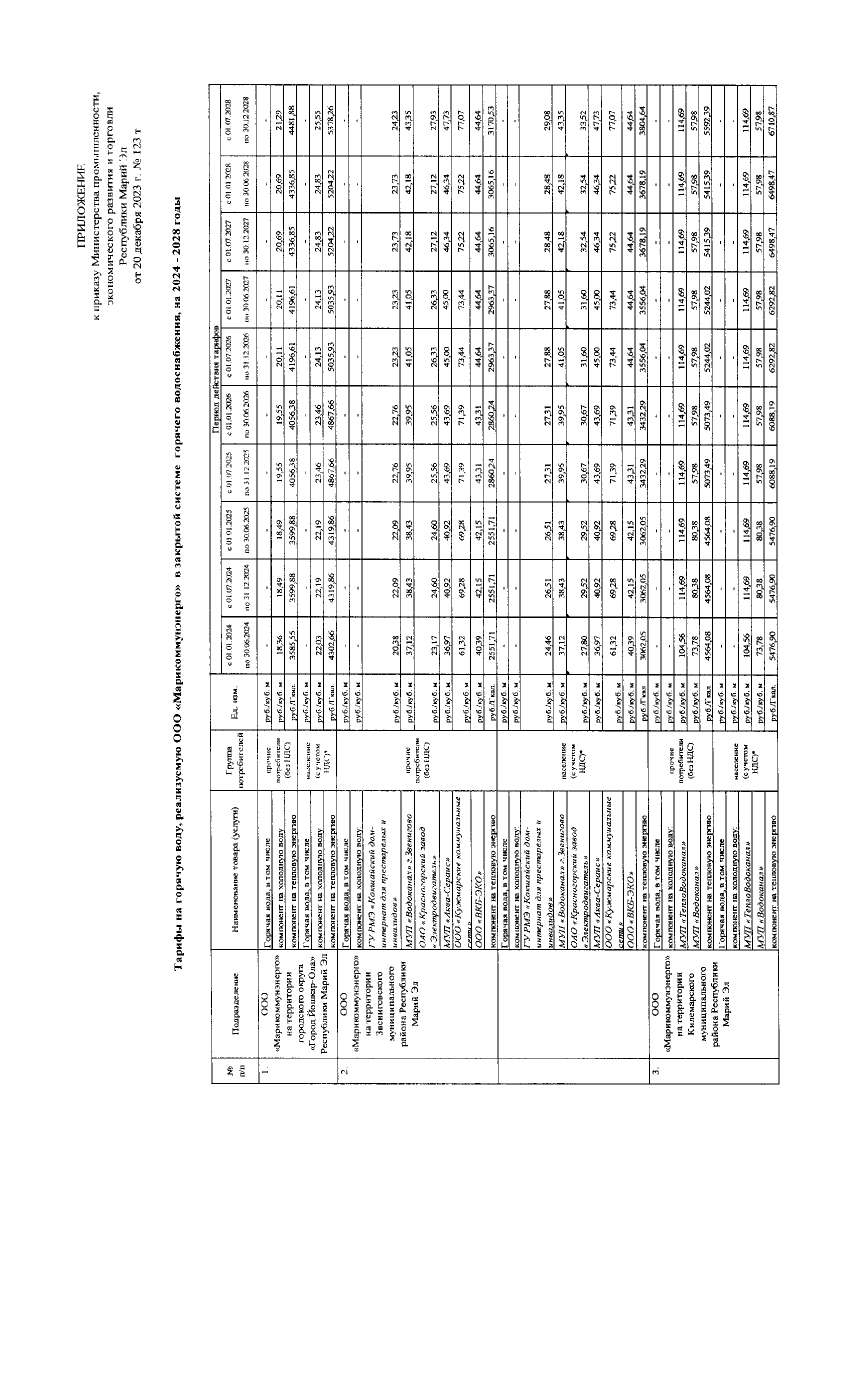 "Об установлении тарифов на горячую воду, реализуемую ООО "Марикоммунэнерго" в закрытой системе горячего водоснабжения, на 2024 - 2028 годы"