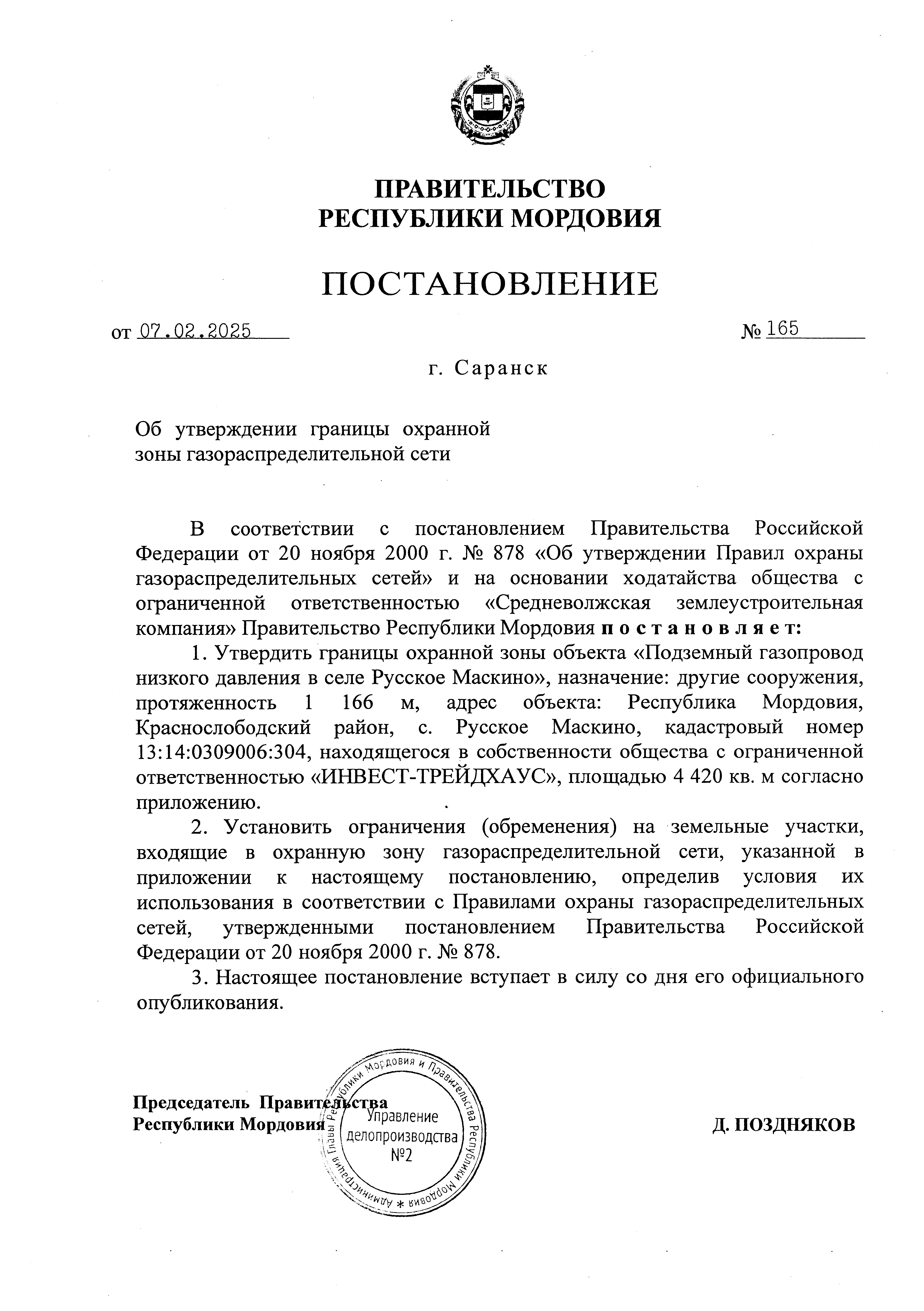 Постановление Правительства Республики Мордовия от 07.02.2025 № 165