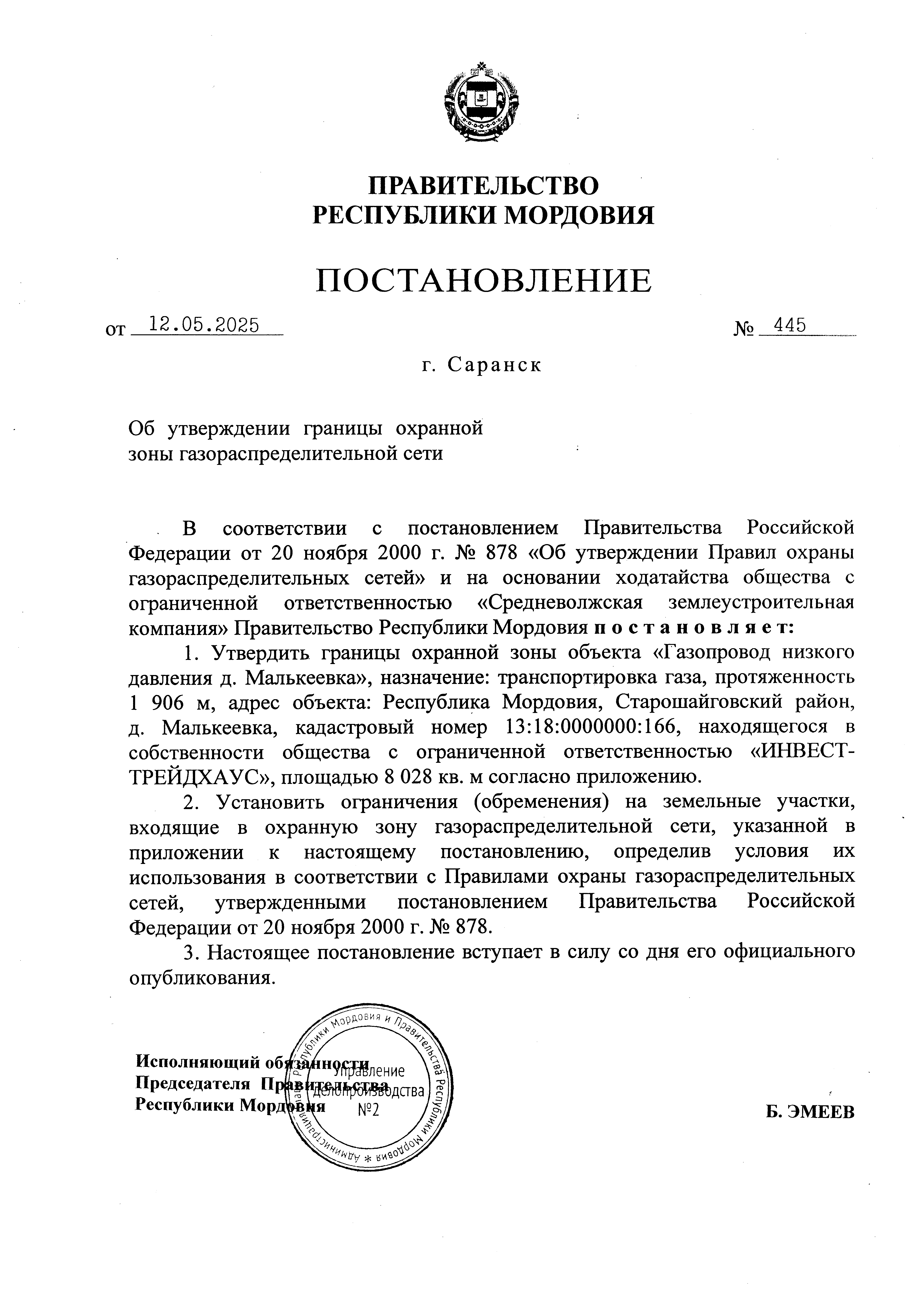 Постановление Правительства Республики Мордовия от 12.05.2025 № 445
