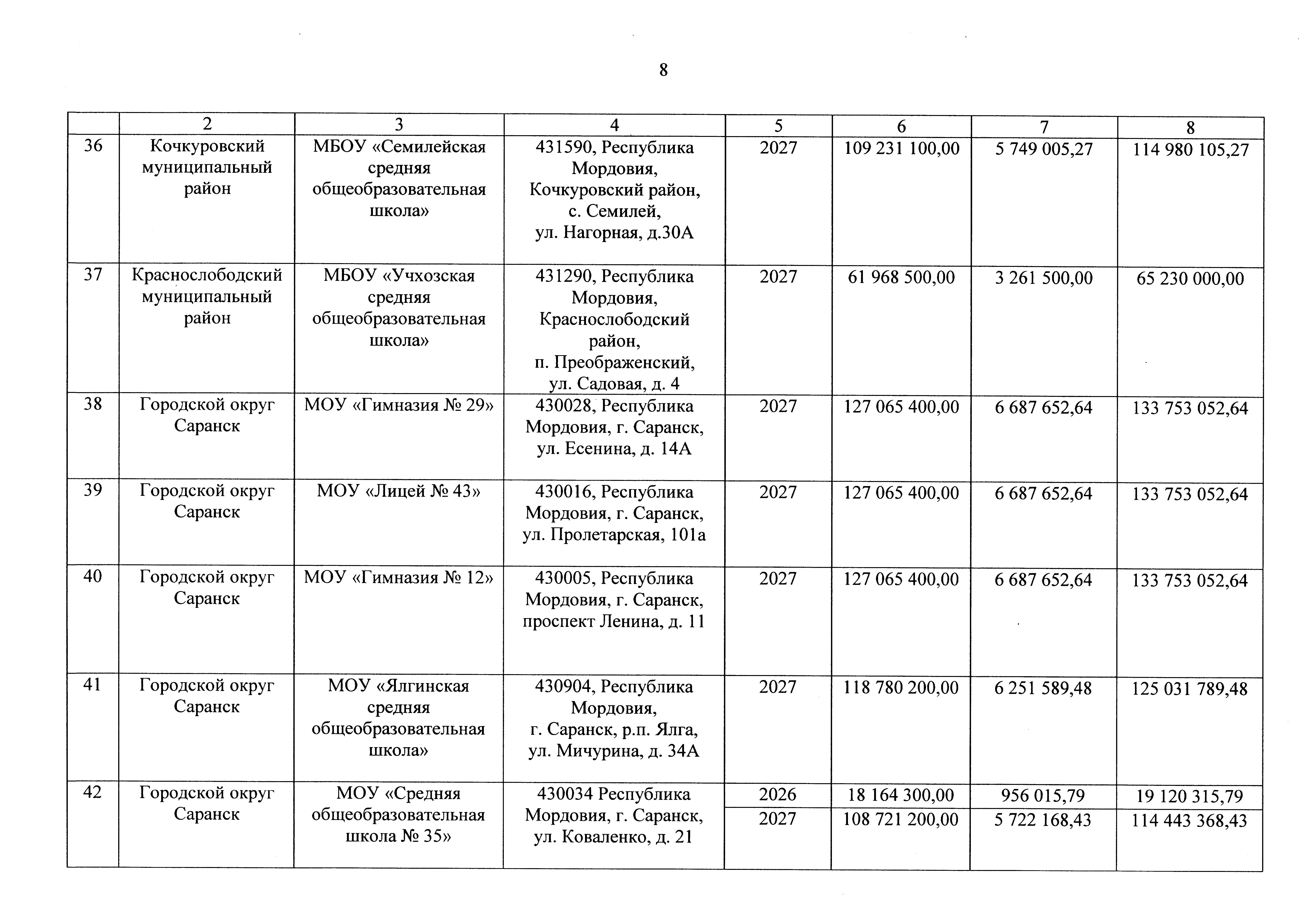 "О внесении изменения в распределение субсидий бюджетам муниципальных районов Республики Мордовия и городского округа Саранск на софинансирование из республиканского бюджета Республики Мордовия расходов, возникающих при реализации мероприятий по модернизации школьных систем образования в рамках государственной программы Республики Мордовия "Развитие образования в Республике Мордовия", в 2026 – 2027 годах"