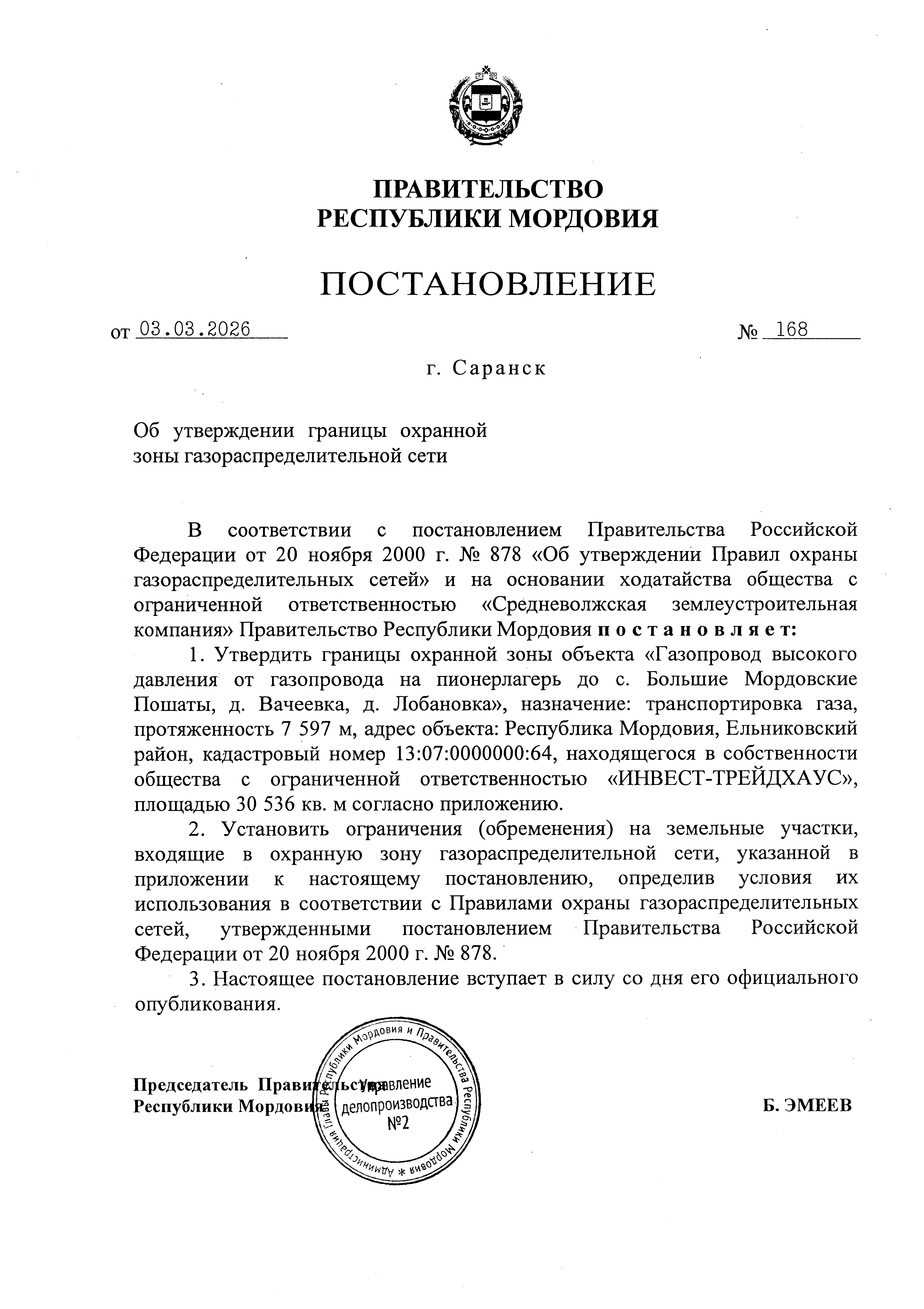 Постановление Правительства Республики Мордовия от 03.03.2026 № 168