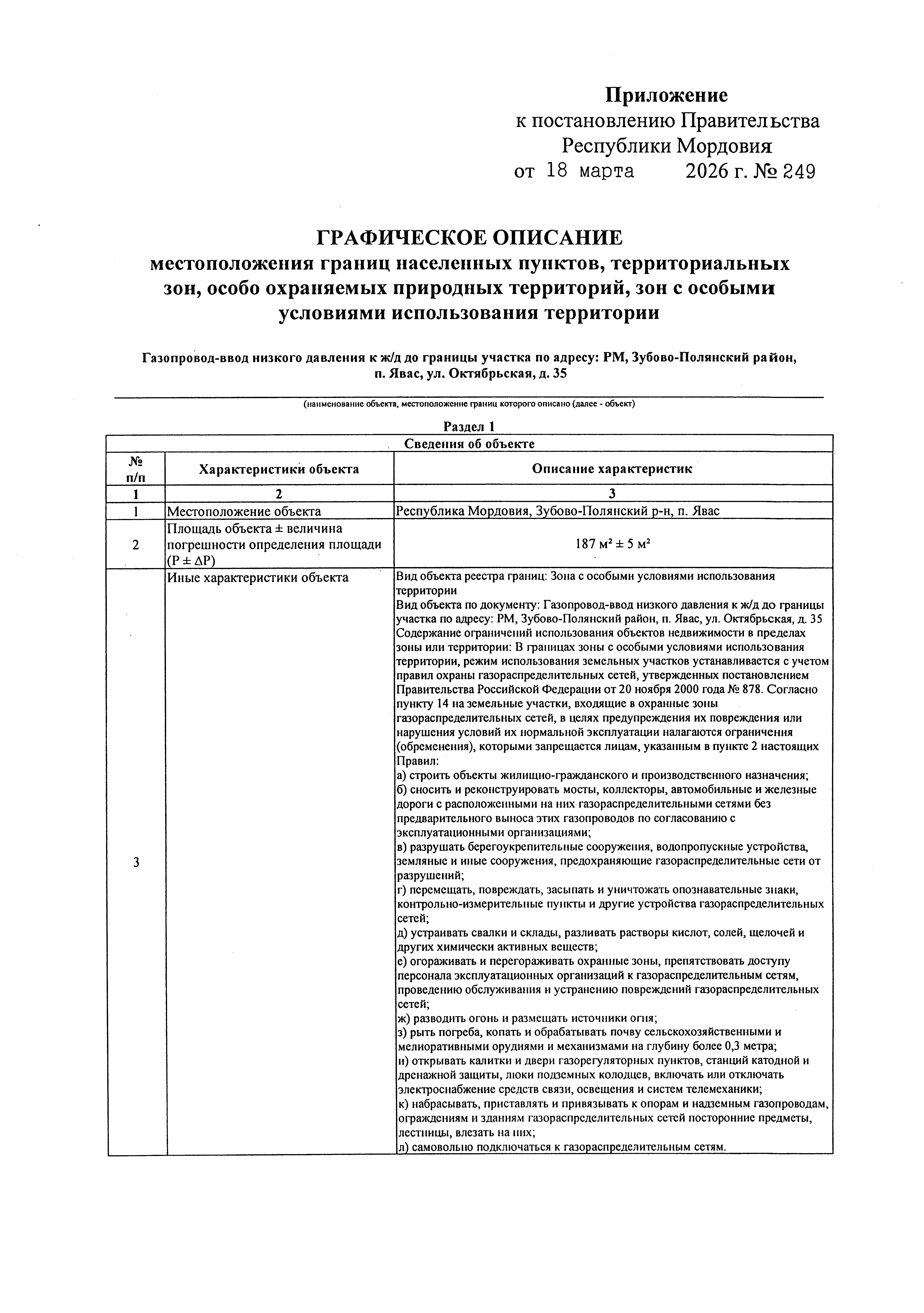 "Об утверждении границы охранной зоны газораспределительной сети"