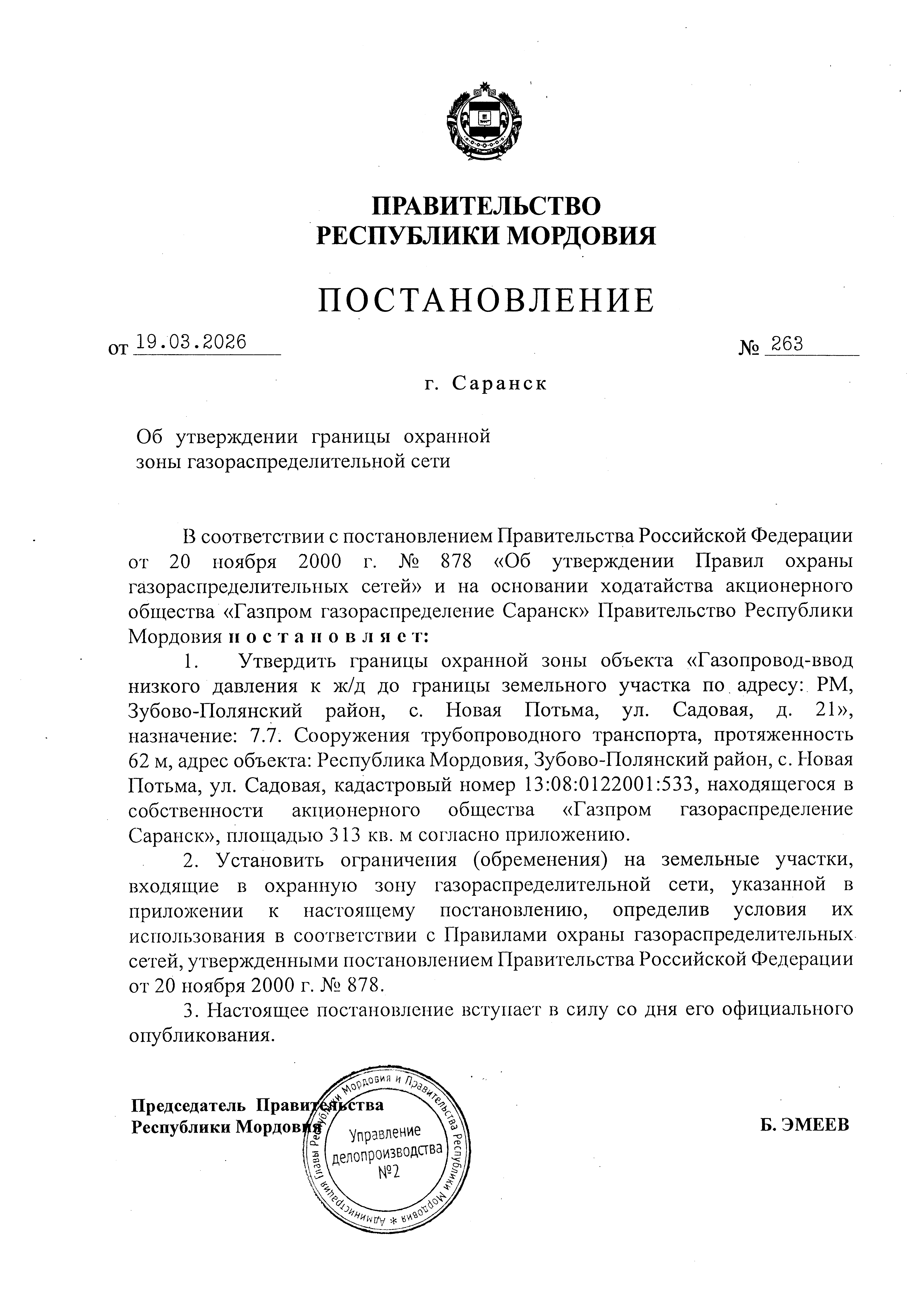 Постановление Правительства Республики Мордовия от 19.03.2026 № 263