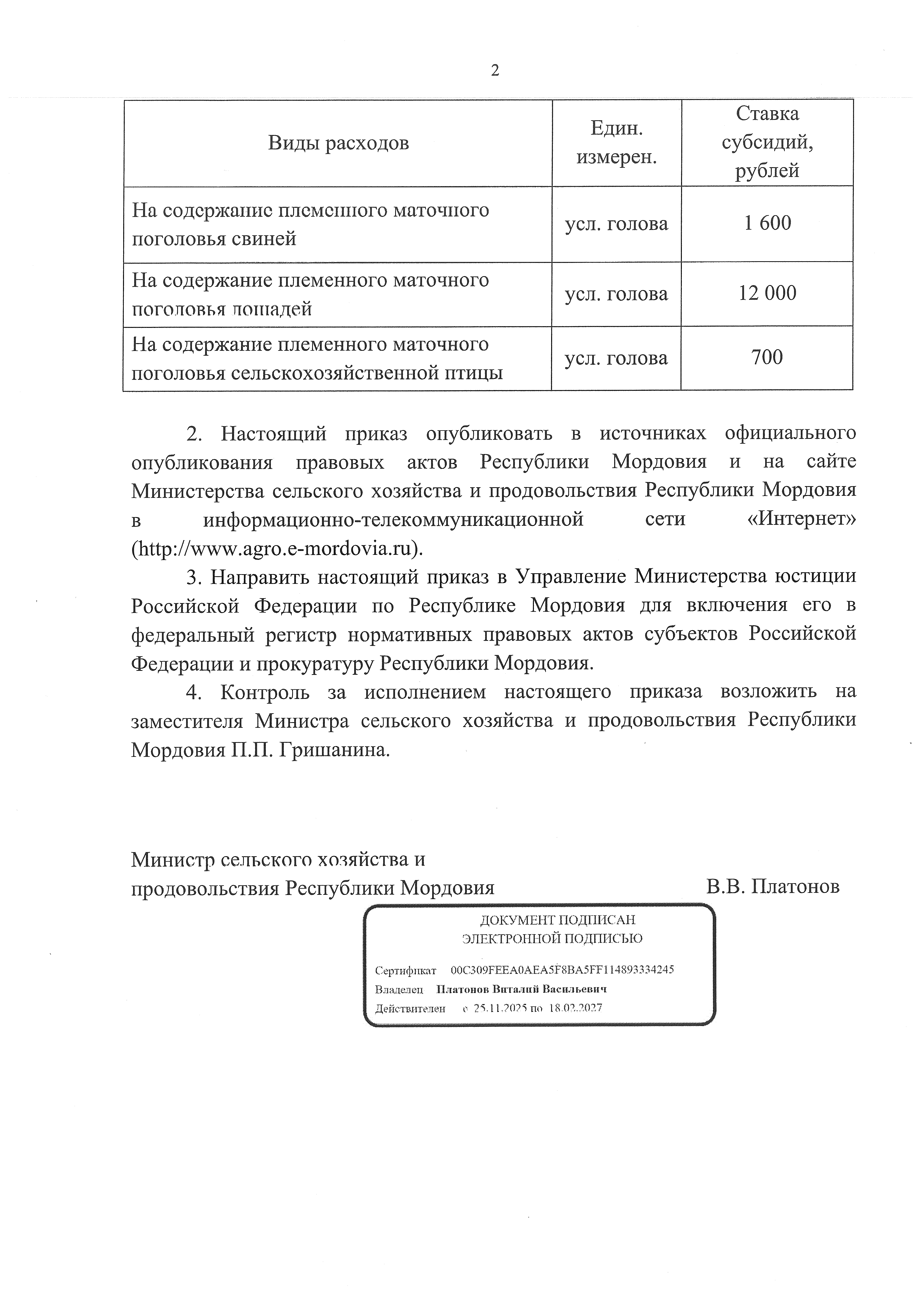 Приказ Министерства сельского хозяйства и продовольствия Республики Мордовия от 08.04.2026 № 44-П