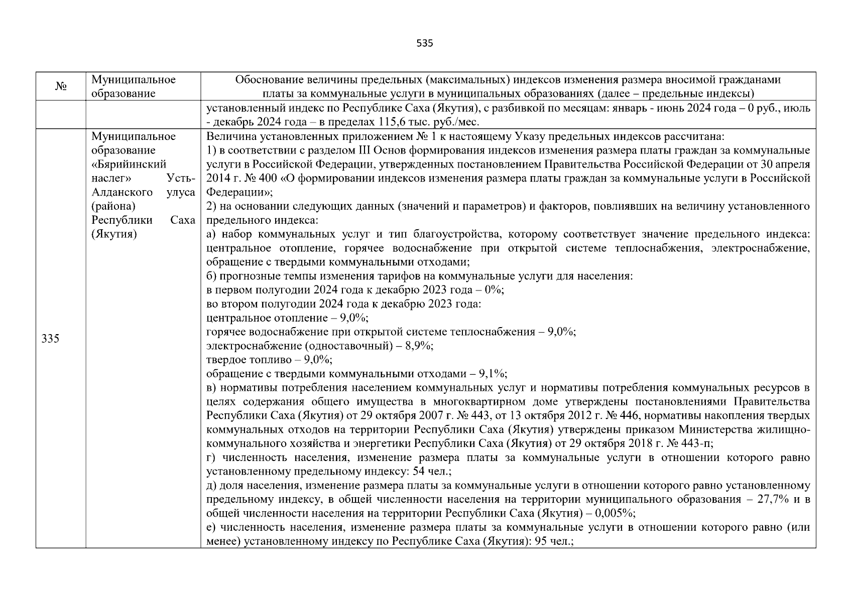 "Об утверждении предельных (максимальных) индексов изменения размера вносимой гражданами платы за коммунальные услуги по муниципальным образованиям Республики Саха (Якутия) на период с 2024 по 2028 годы"