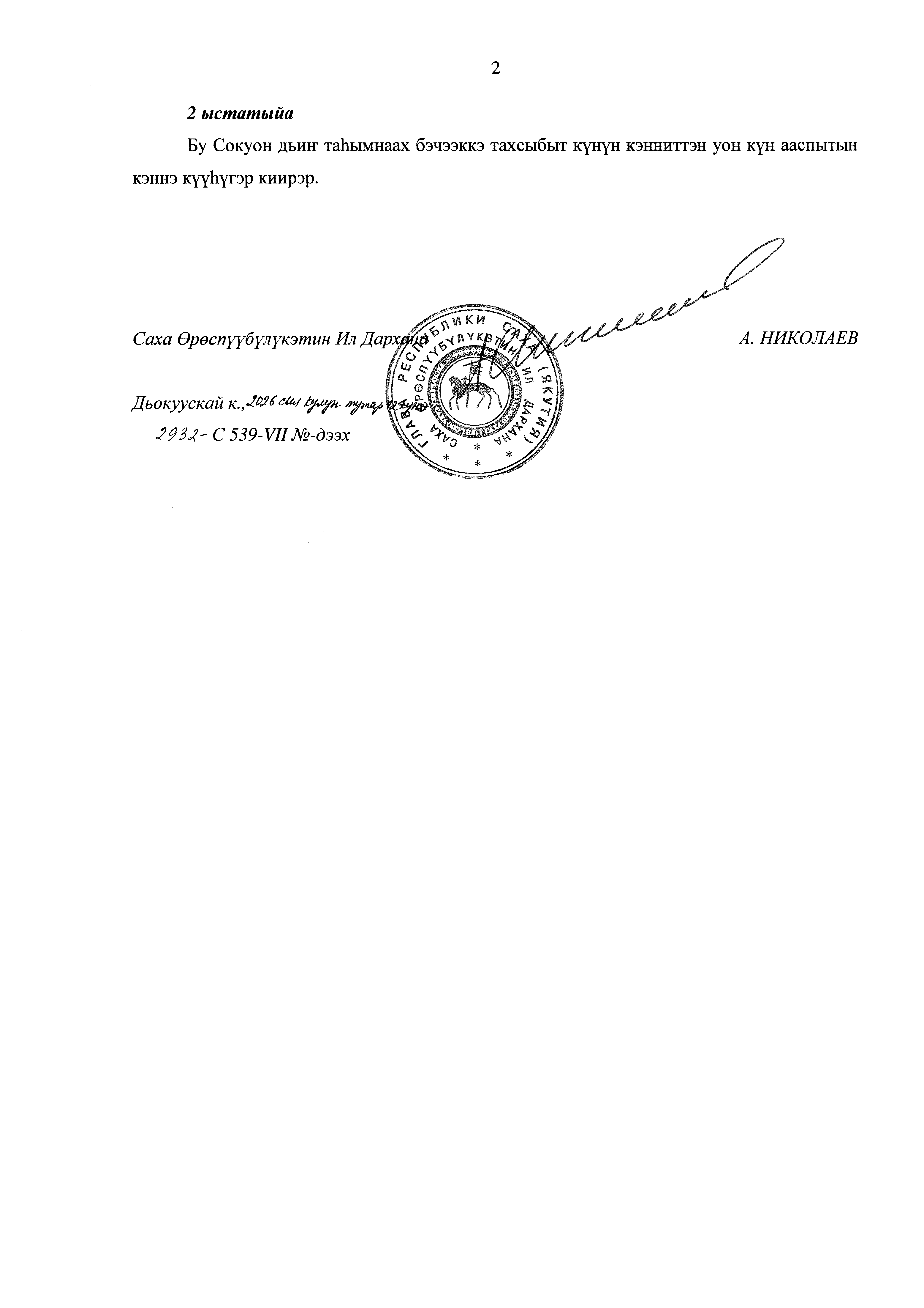 Закон Республики Саха (Якутия) от 12.03.2026 2932-З № 539-VII