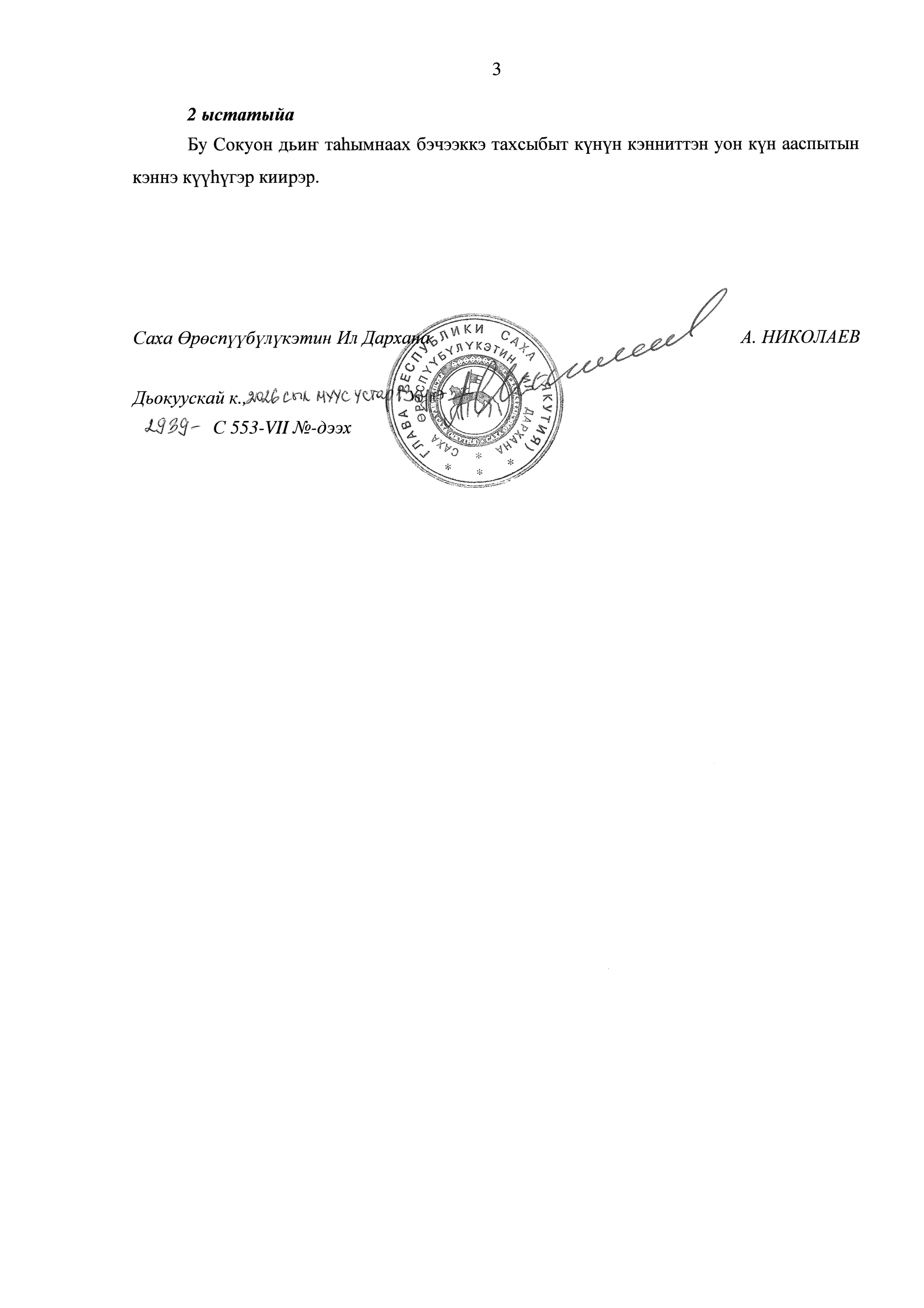 Закон Республики Саха (Якутия) от 13.04.2026 № 2939-З № 553-VII