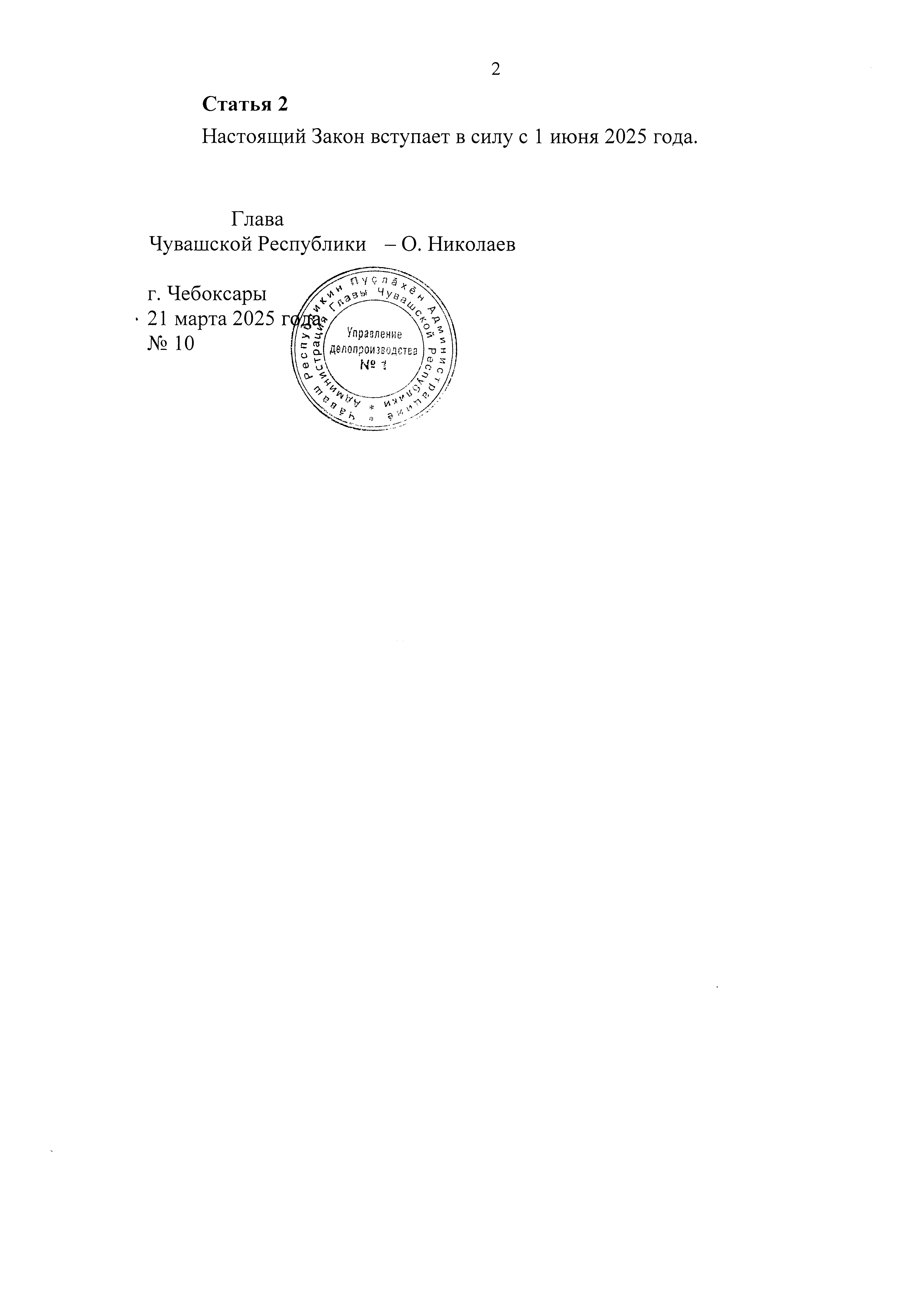Закон Чувашской Республики от 21.03.2025 № 10
