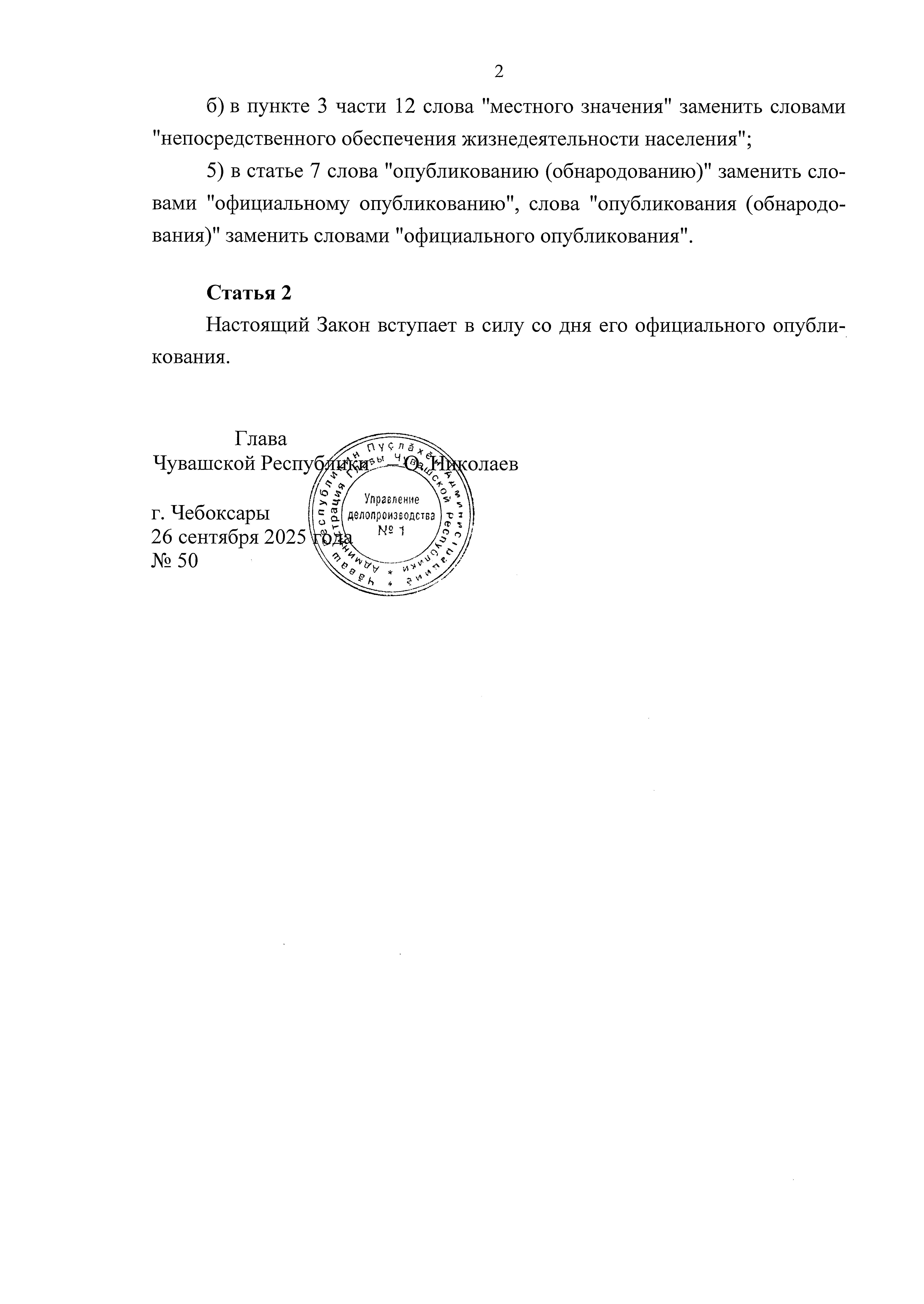 Закон Чувашской Республики от 26.09.2025 № 50