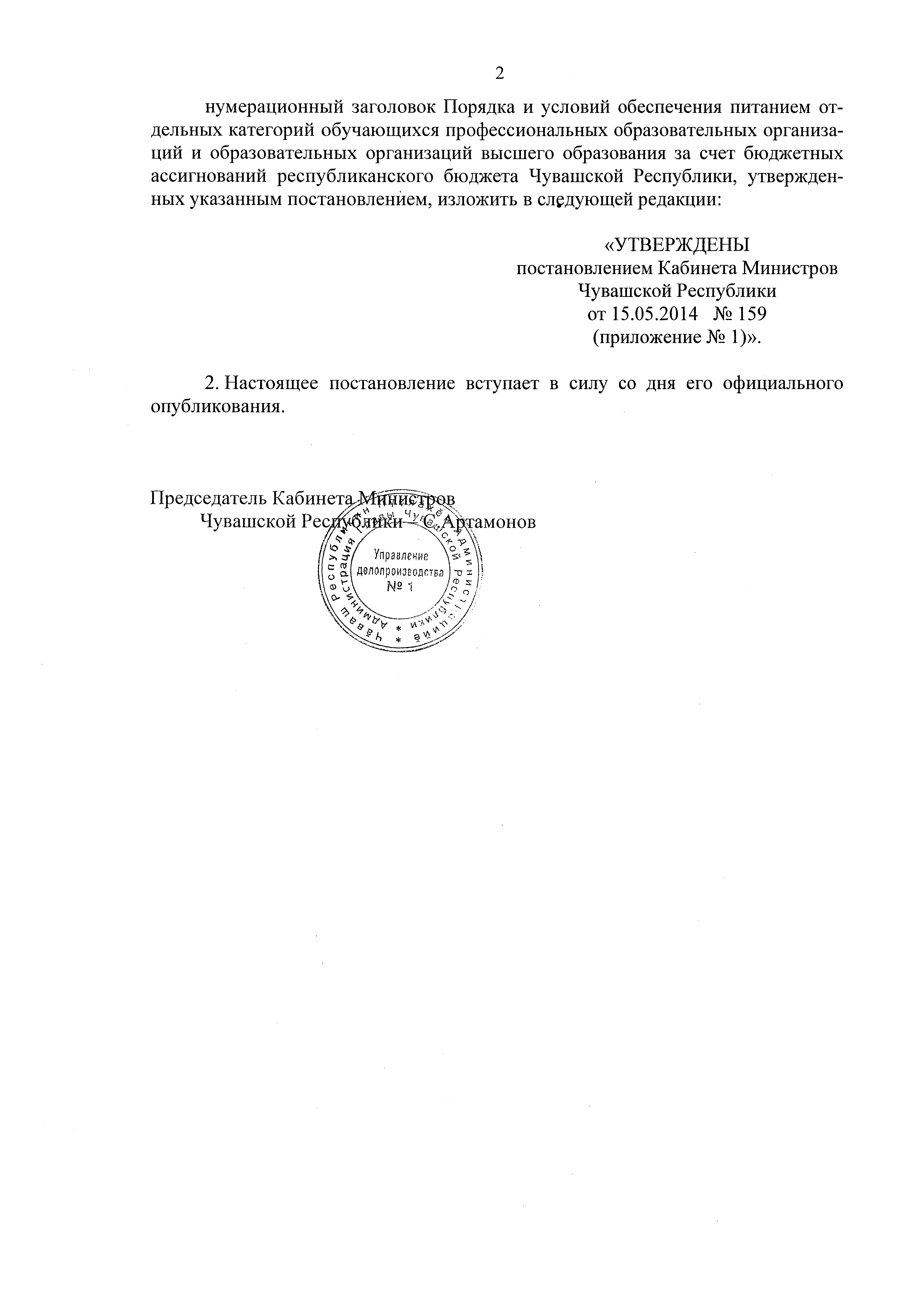 "О внесении изменений в постановление Кабинета Министров Чувашской Республики от 15 мая 2014 г. № 159"