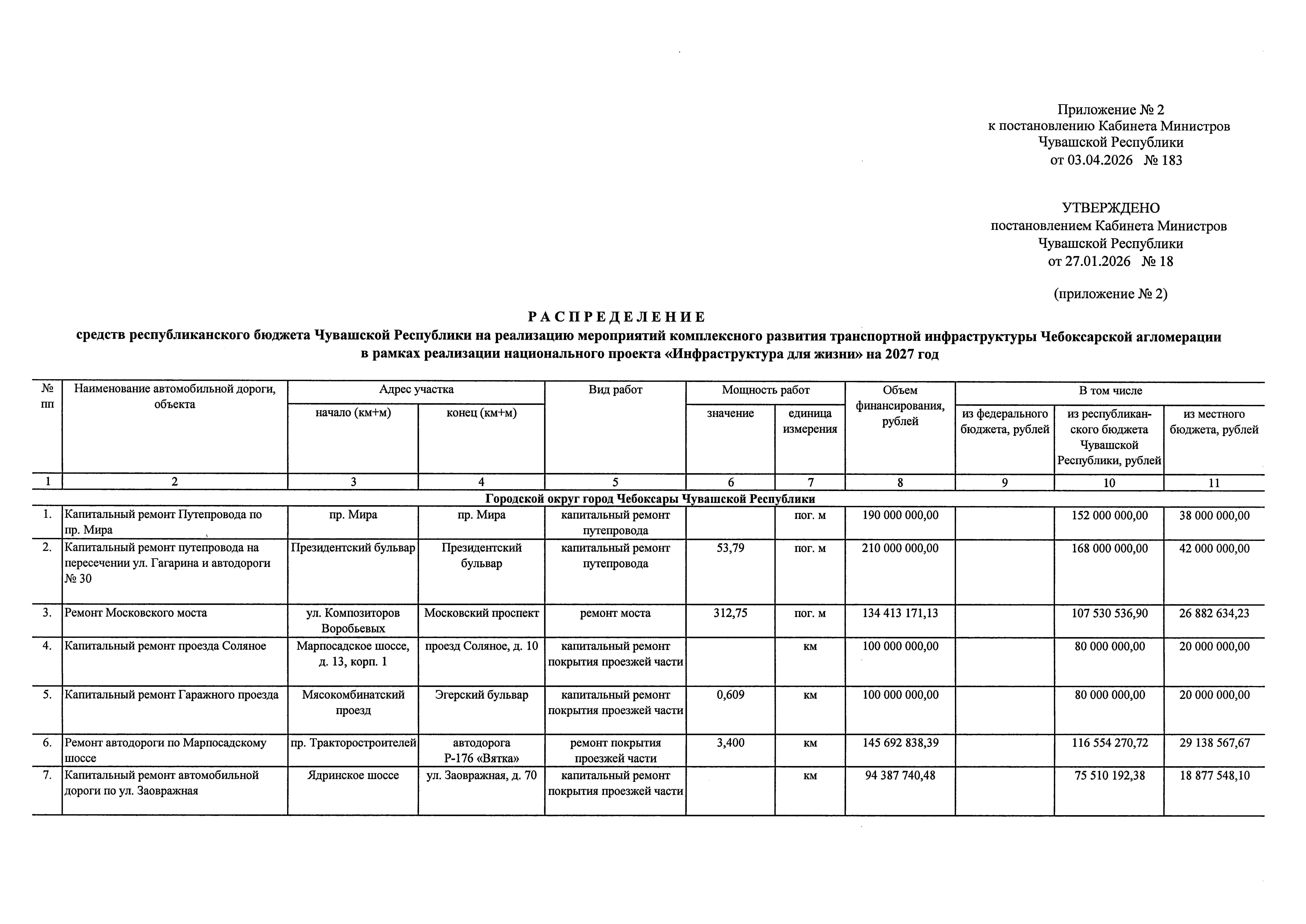 Постановление Кабинета Министров Чувашской Республики от 03.04.2026 № 183