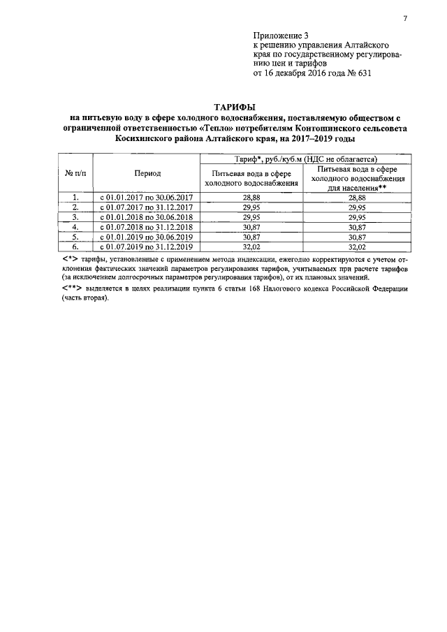 "Об установлении тарифов на питьевую воду в сфере холодного водоснабжения, поставляемую обществом с ограниченной ответственностью "Тепло" потребителям Косихинского района Алтайского края, на 2017-2019 годы"