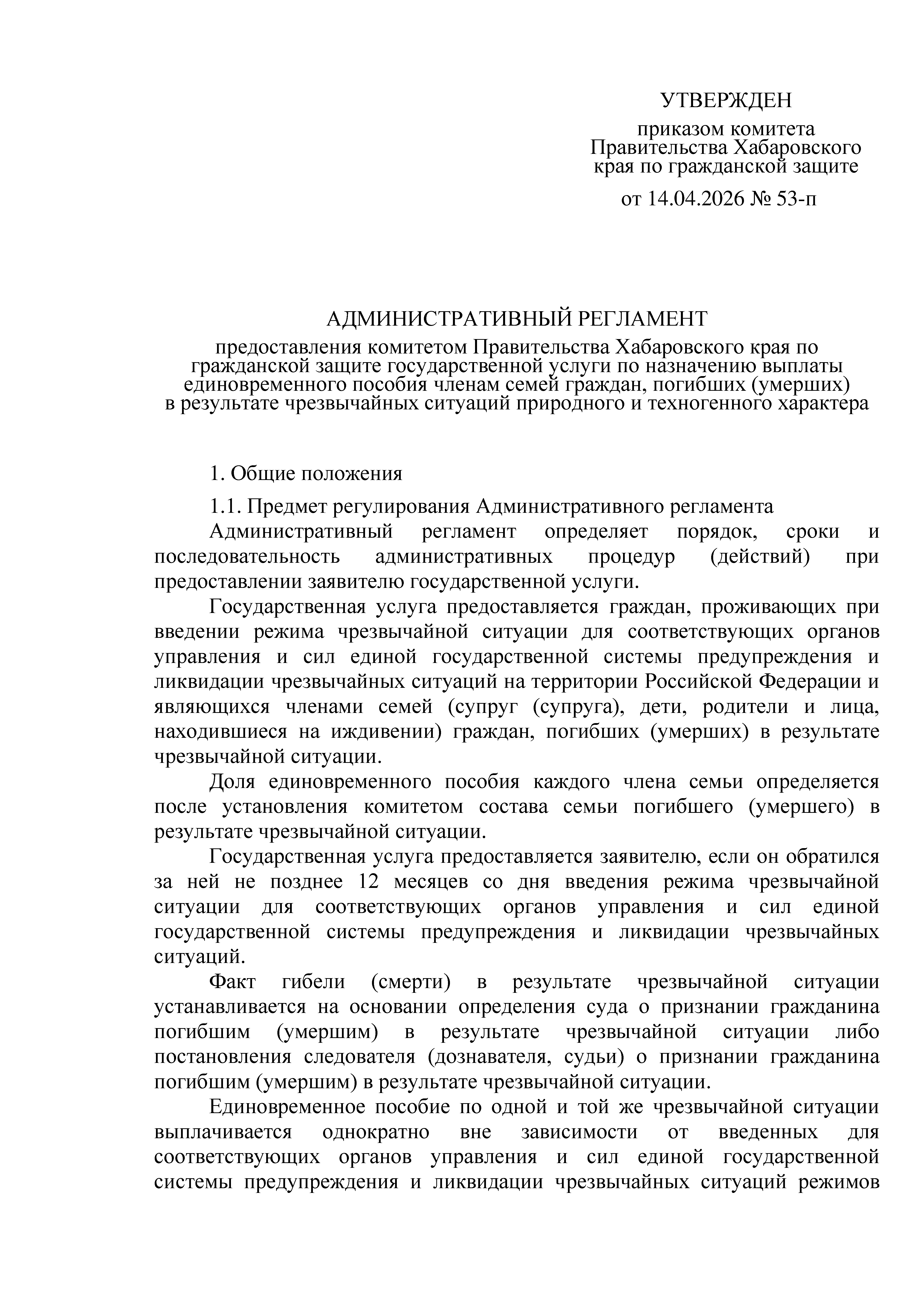 Приказ Комитета Правительства Хабаровского края по гражданской защите от 14.04.2026 № 53-п
