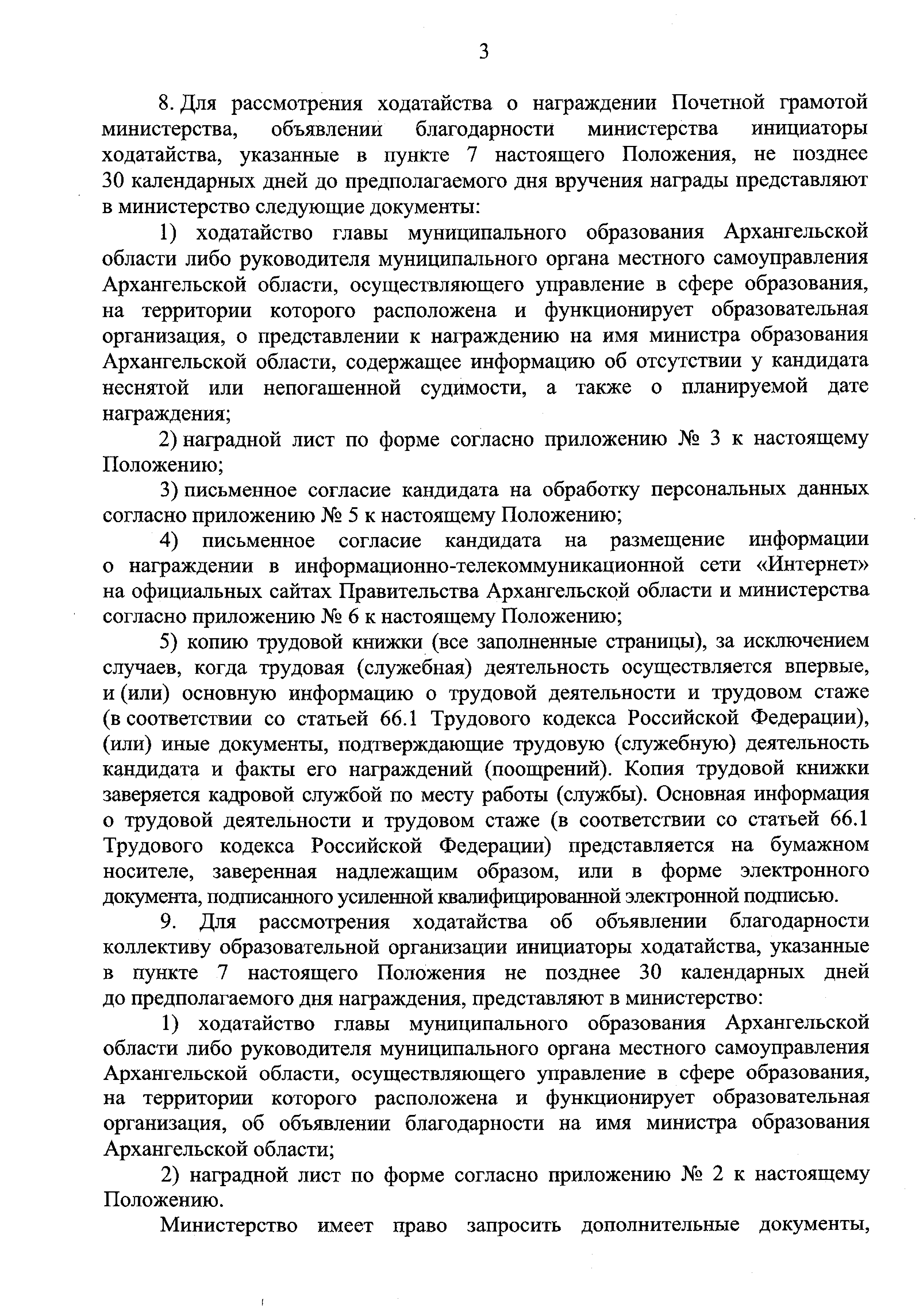 "Об утверждении Положения о награждении Почетной грамотой и объявлении благодарности министерства образования Архангельской области"