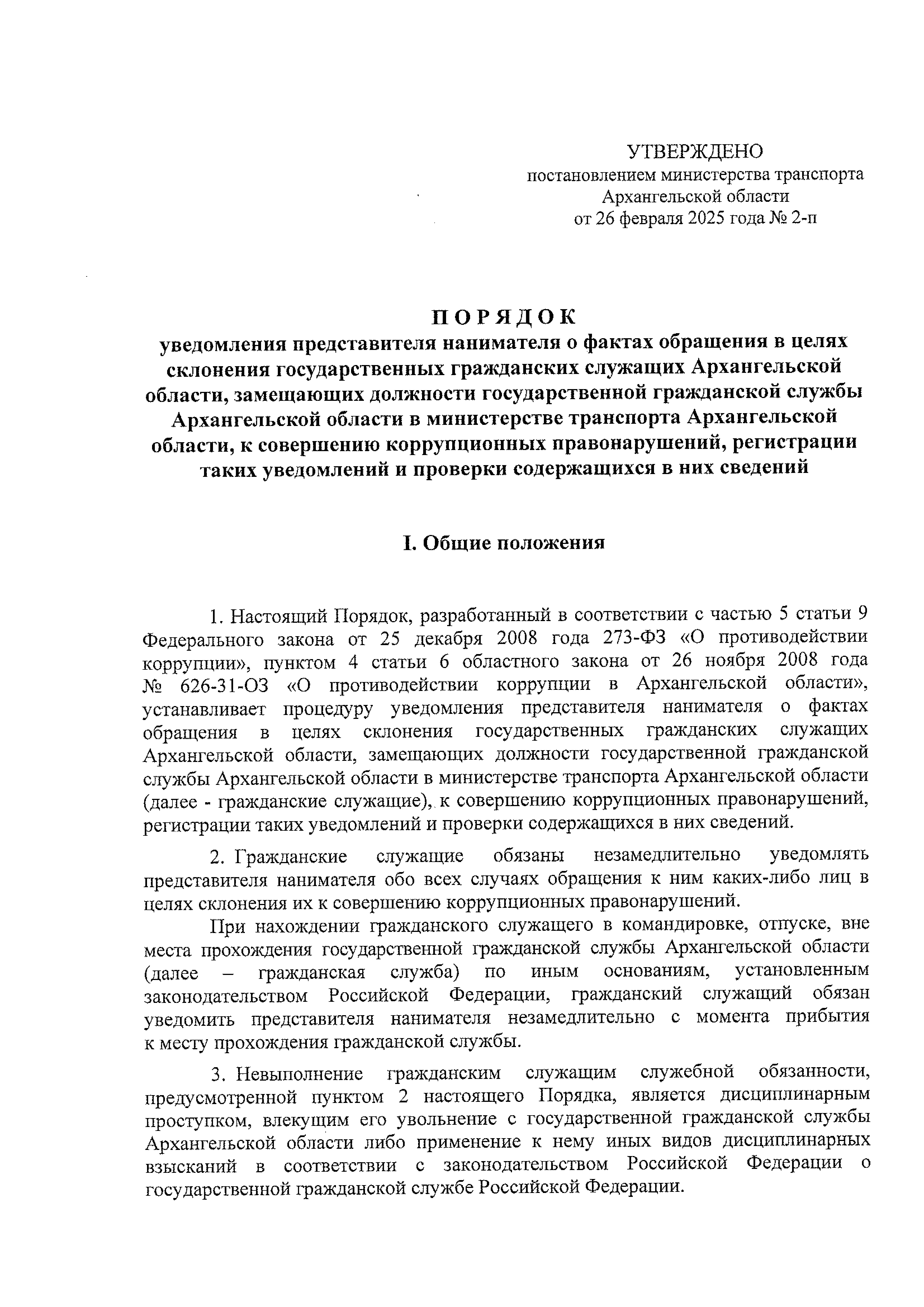 Постановление Министерства транспорта Архангельской области от 26.02.2025 № 2-п