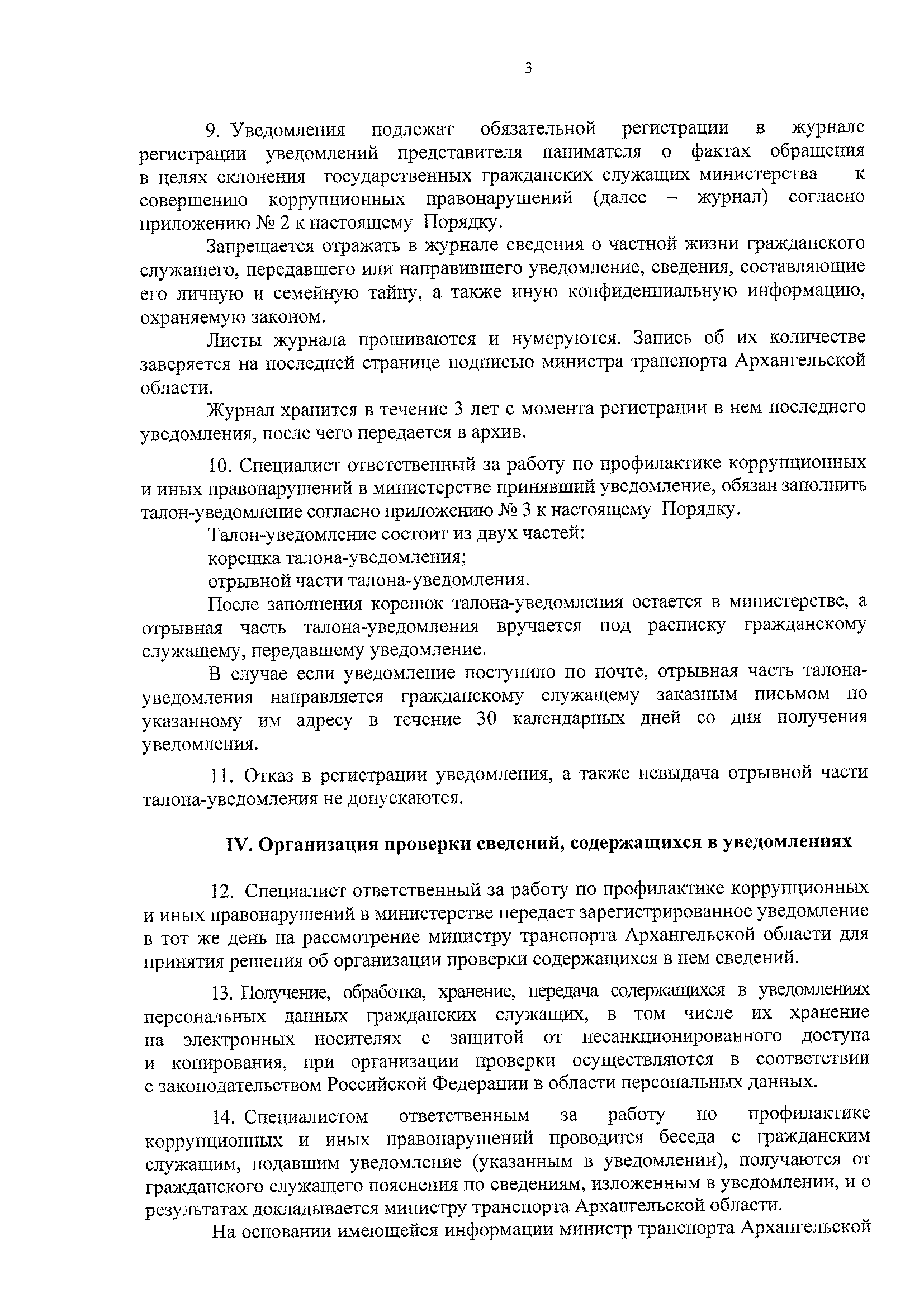 "Об утверждении Порядка уведомления представителя нанимателя о фактах обращения в целях склонения государственных гражданских служащих Архангельской области, замещающих должности государственной гражданской службы Архангельской области в министерстве транспорта Архангельской области, к совершению коррупционных правонарушений, регистрации таких уведомлений и проверки содержащихся в них сведений"