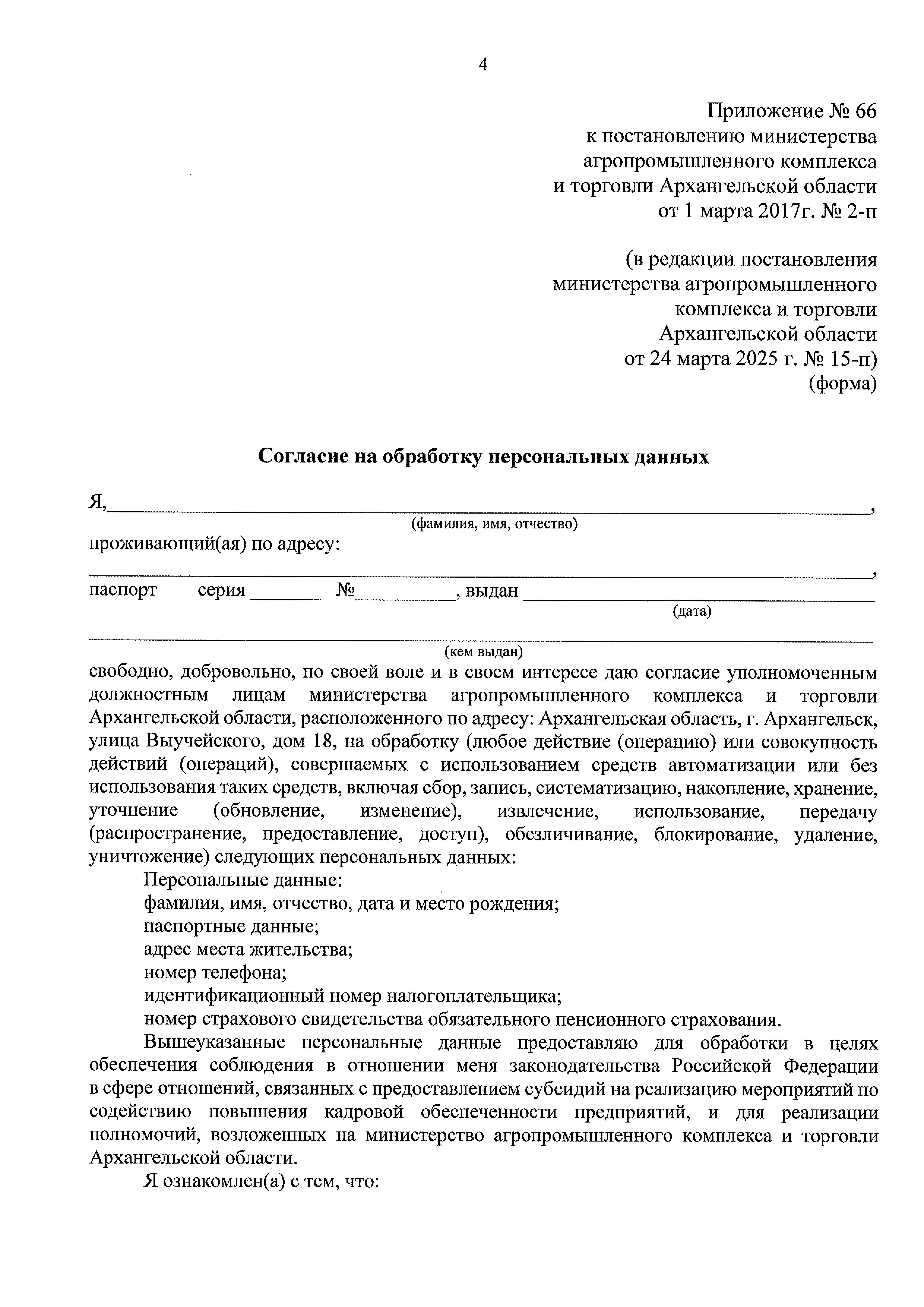 Постановление Министерства агропромышленного комплекса и торговли Архангельской области от 24.03.2025 № 15-п